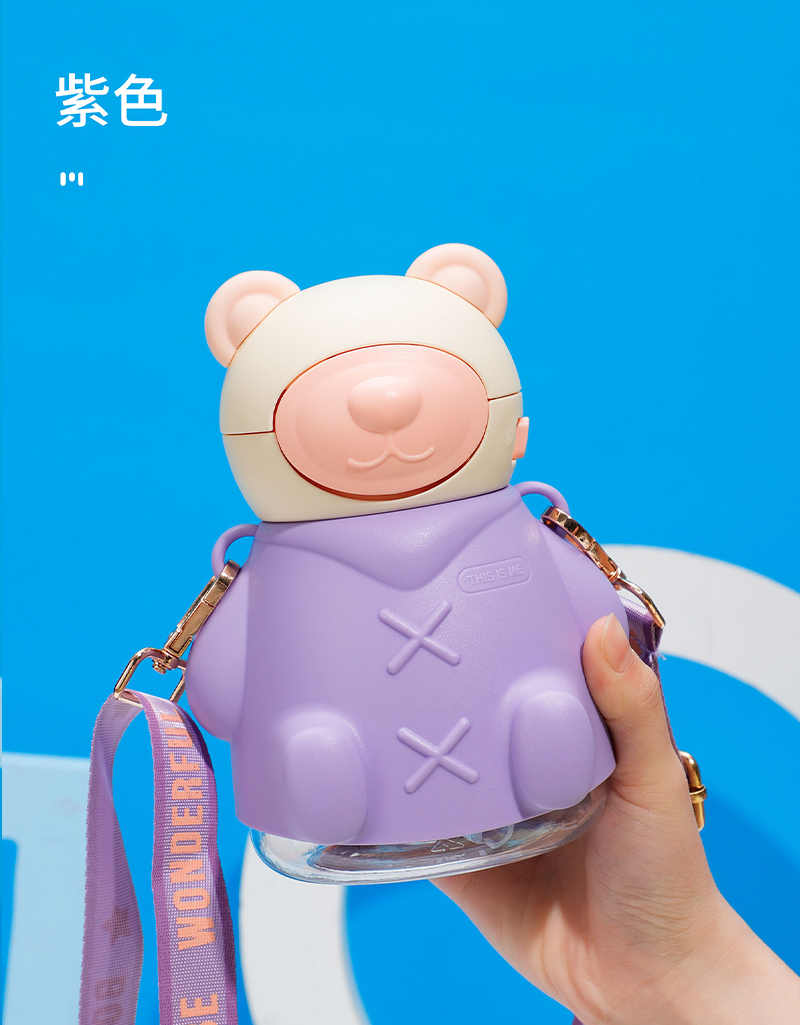 720ML卡通软萌动物吸管背带塑料杯可爱水杯(彩盒)