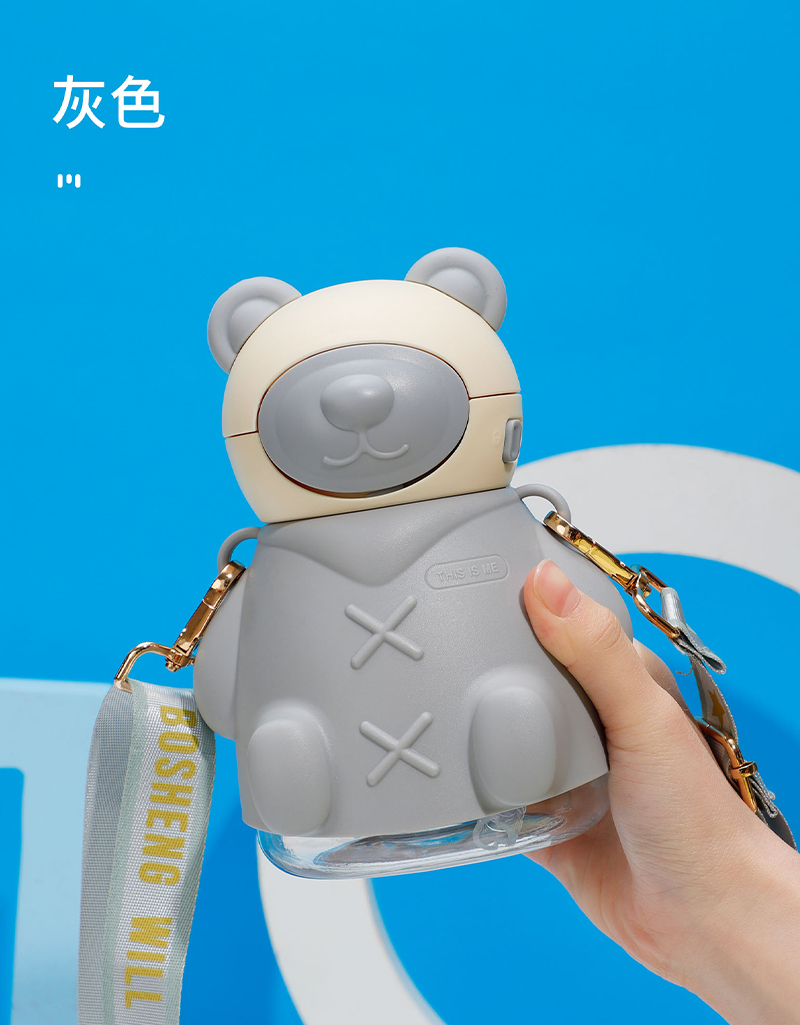 样品星兔创意卡通水杯儿童弹跳吸管杯可爱运动户外背带学生塑料杯