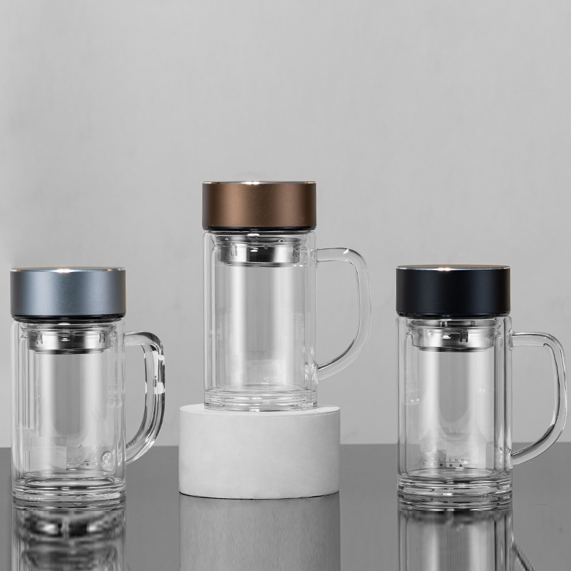 360ML手柄玻璃杯简约商务男士双层泡茶办公礼品杯子