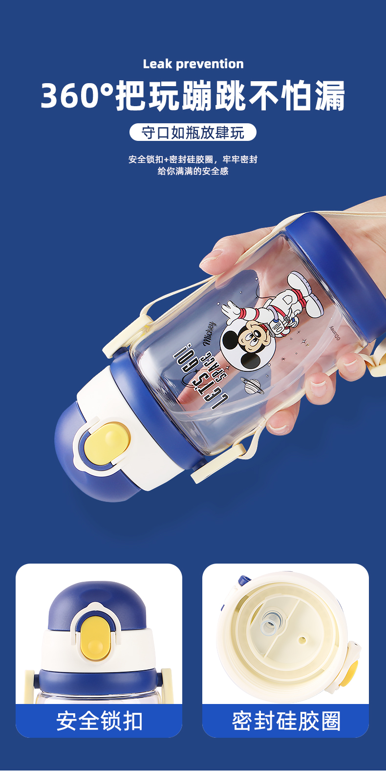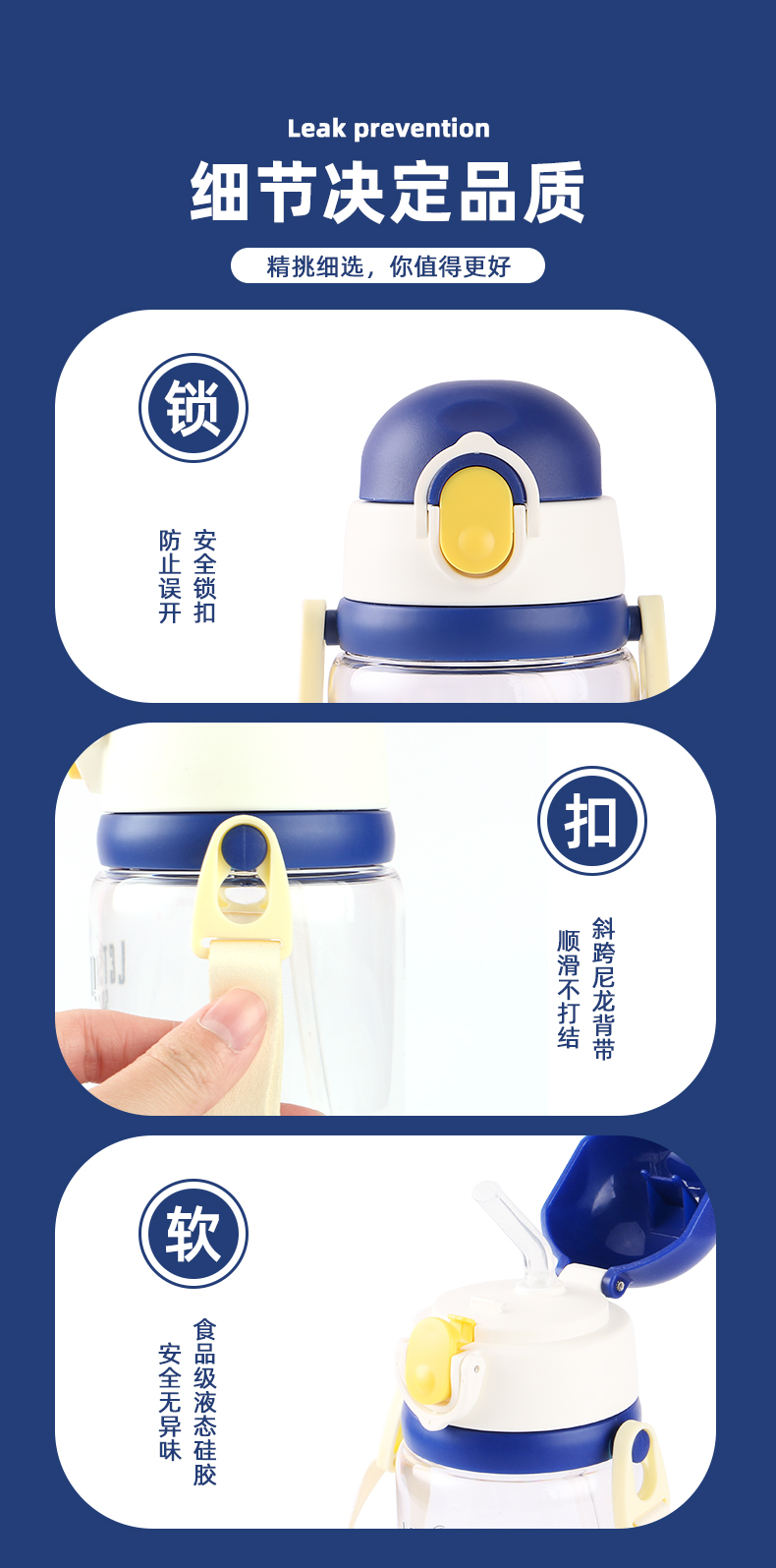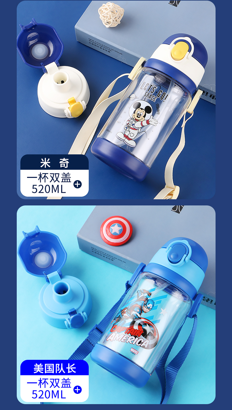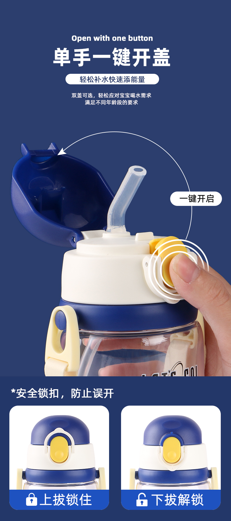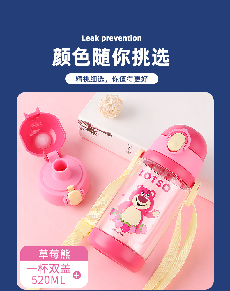 600ML卡通鹿角可爱儿童塑料杯便携背带弹盖吸管水杯
