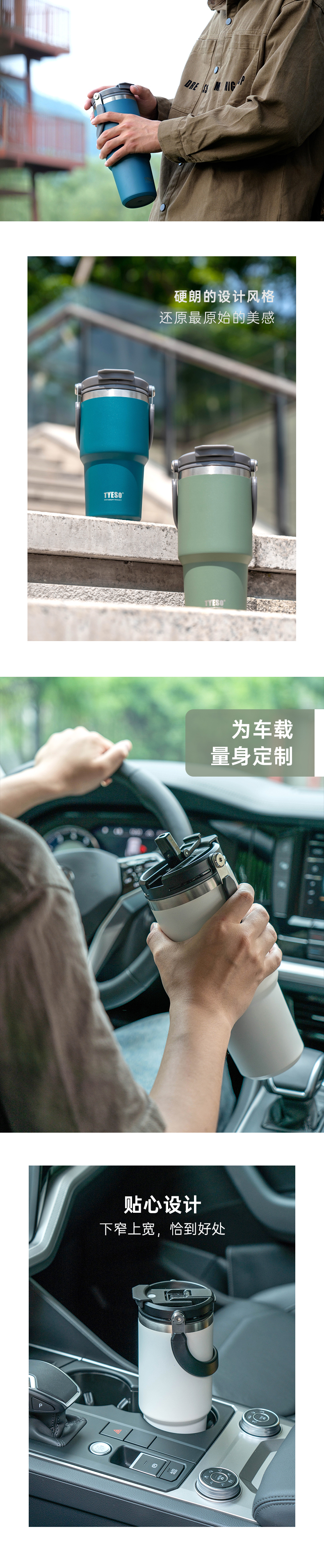 1000ML时尚小披风大肚保温杯316不锈钢可斜挎水杯