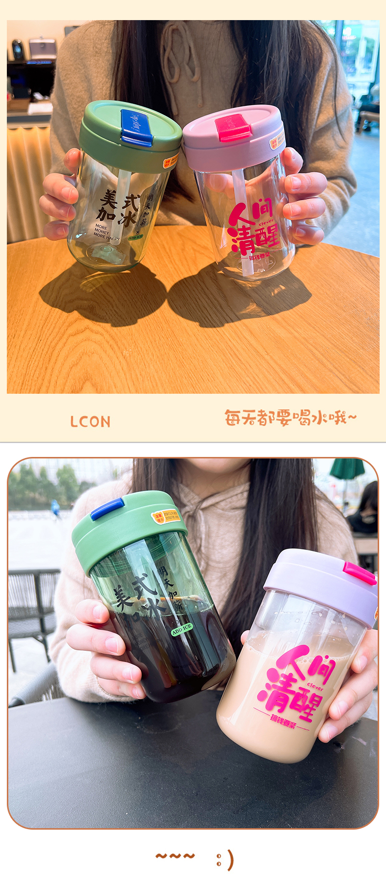 500ML亿本悦色太空杯创意手提绳便携带塑料杯