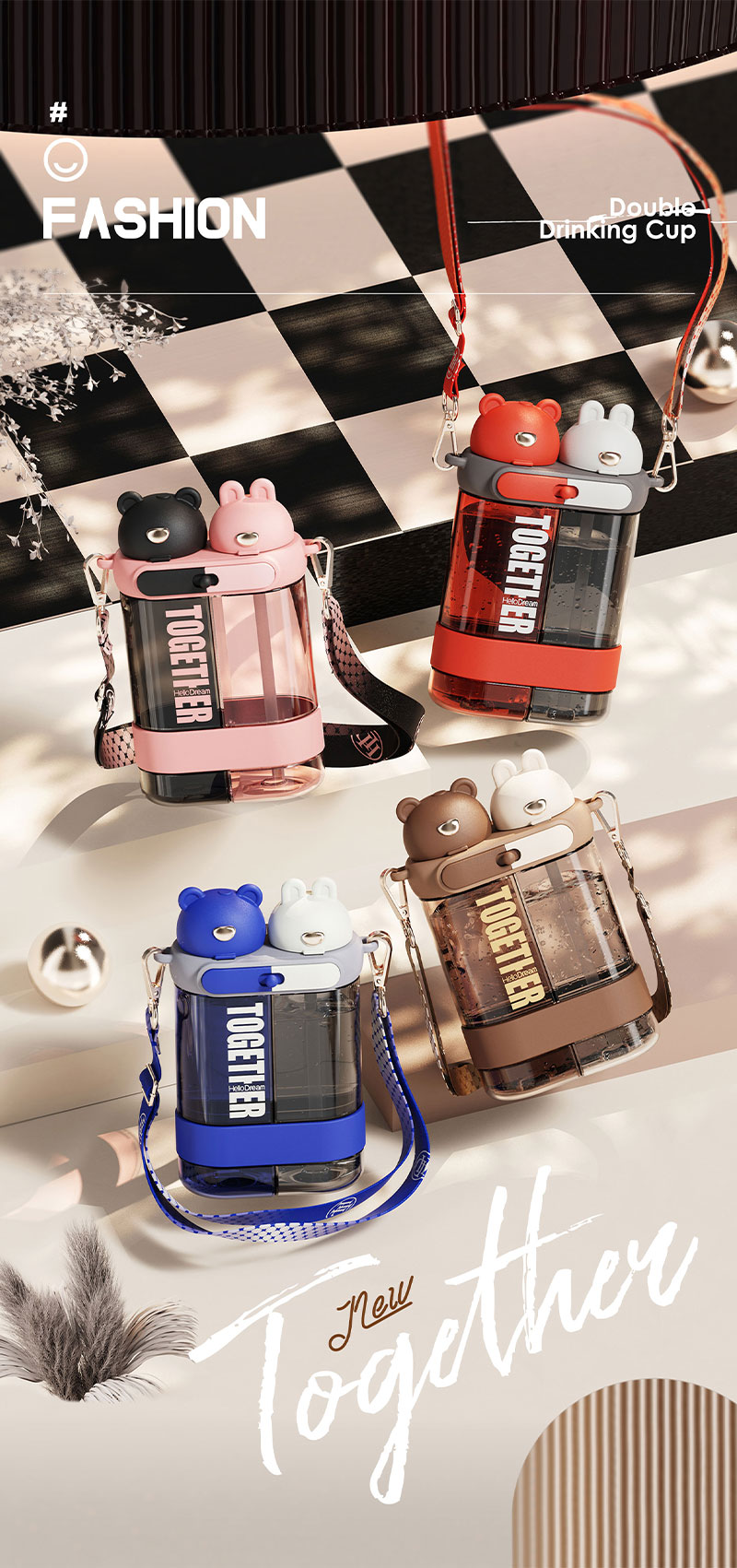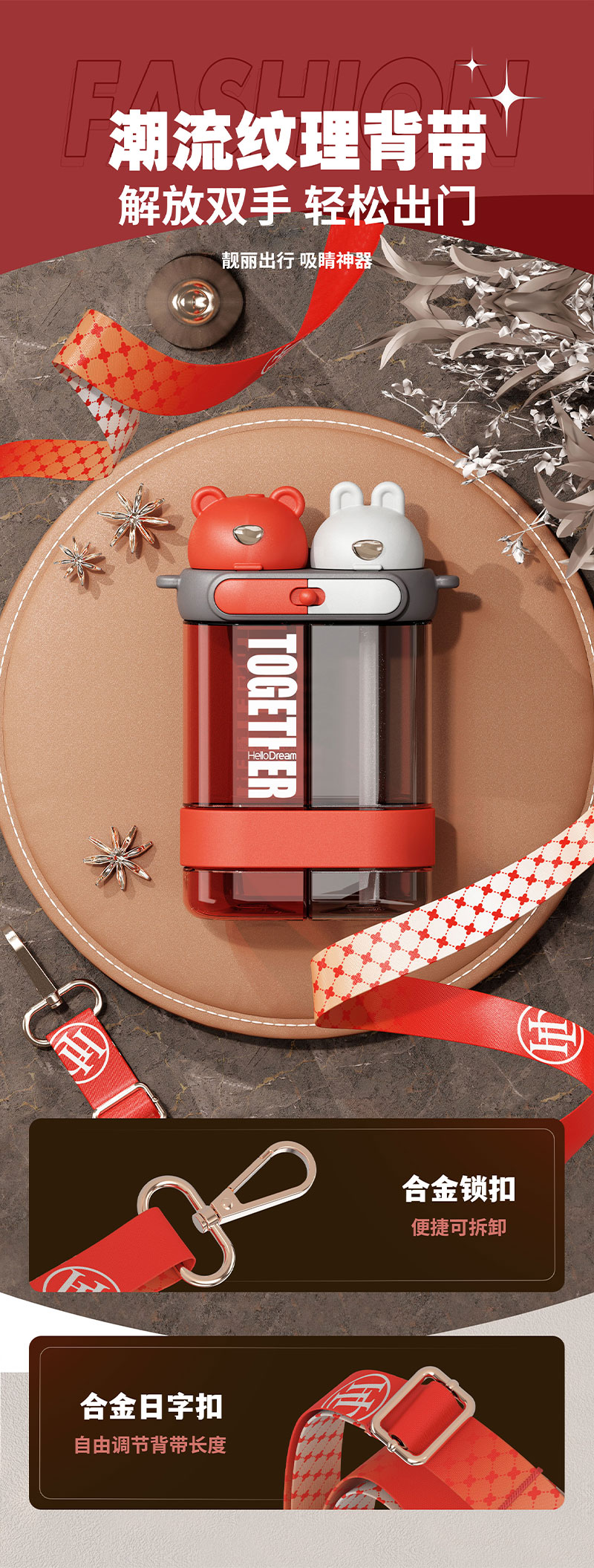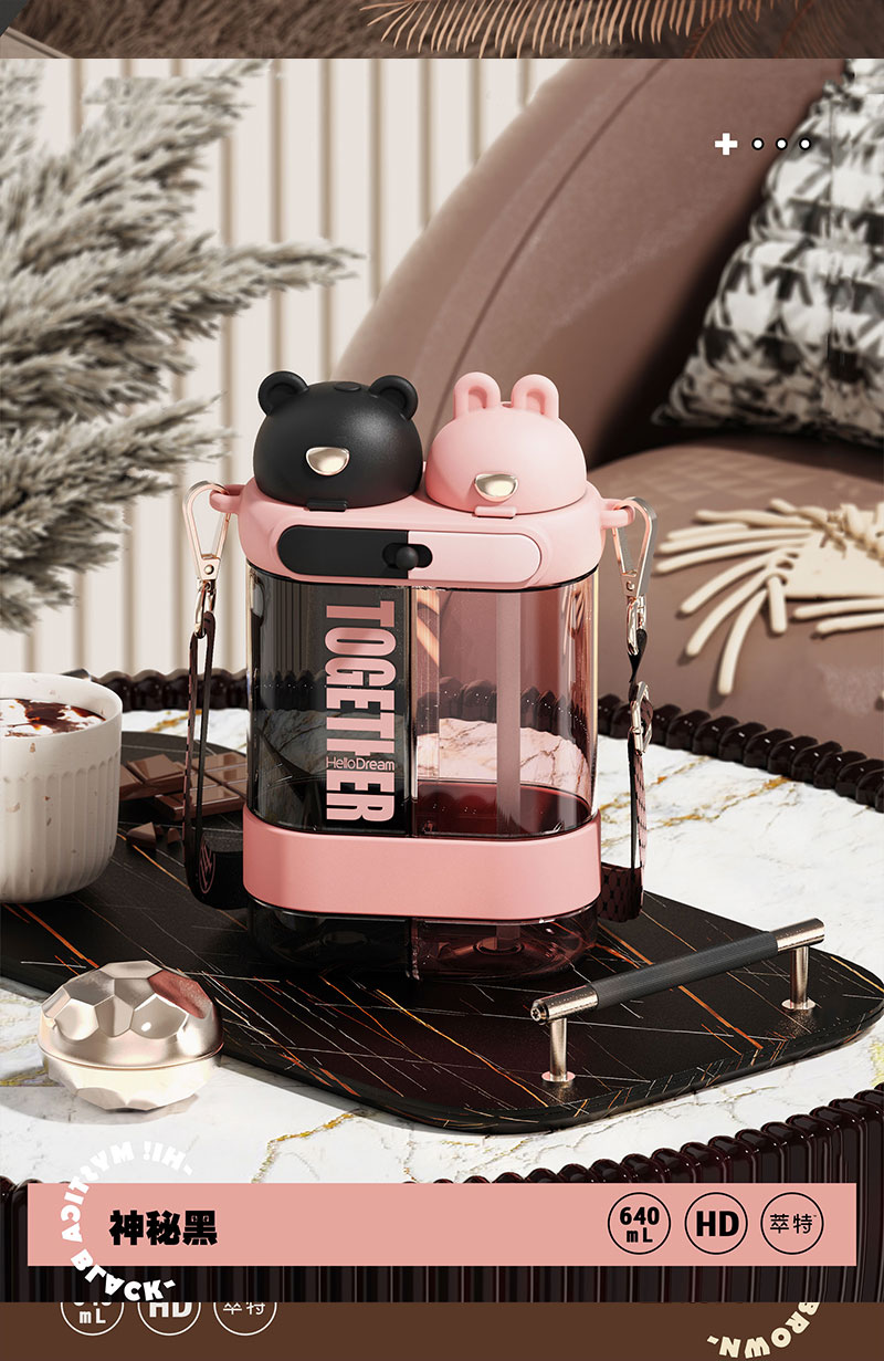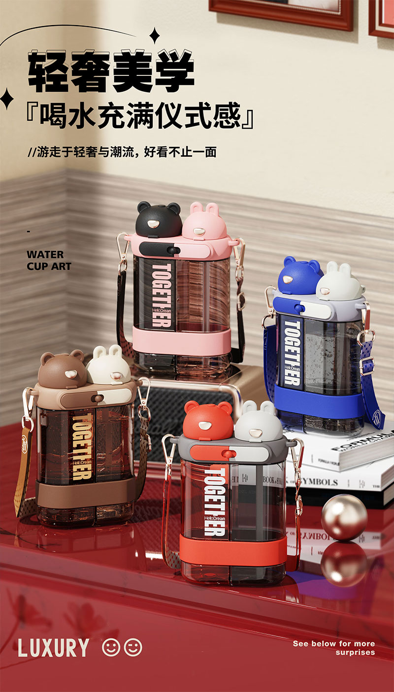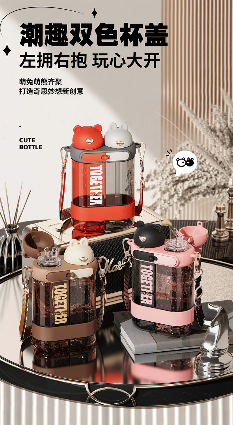 样品星兔创意卡通水杯儿童弹跳吸管杯可爱运动户外背带学生塑料杯