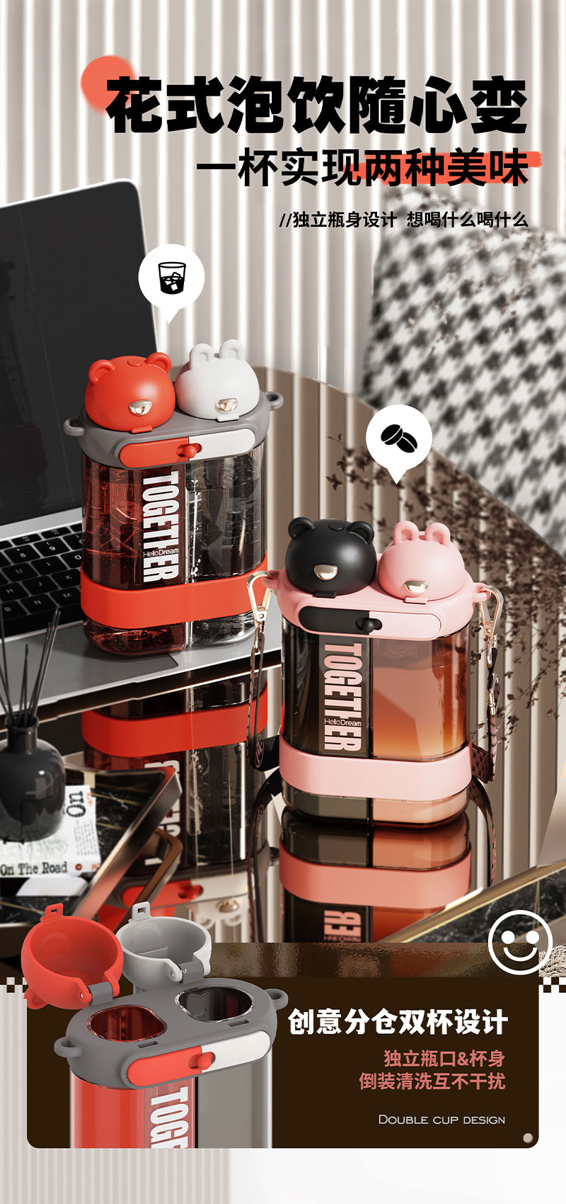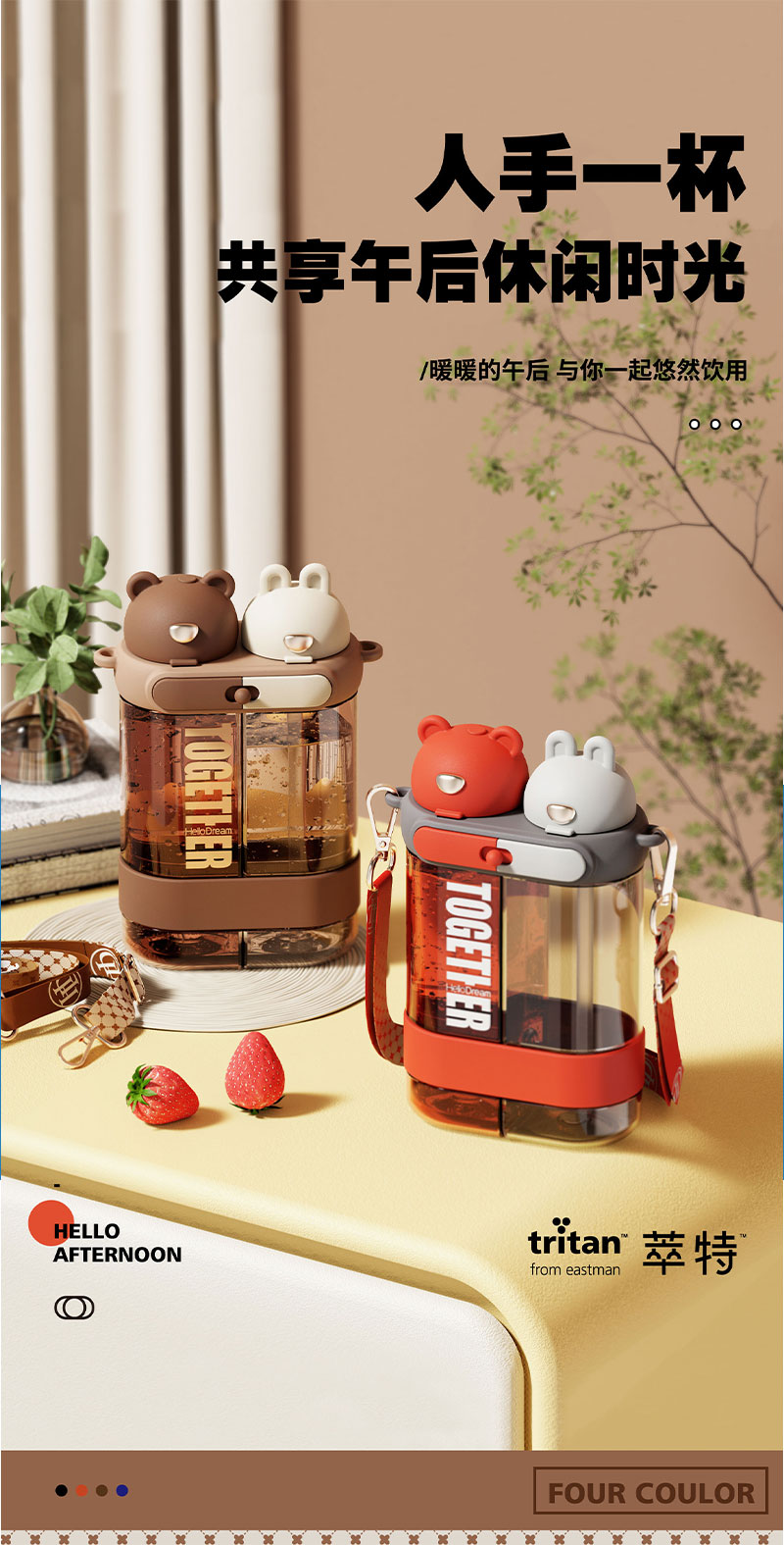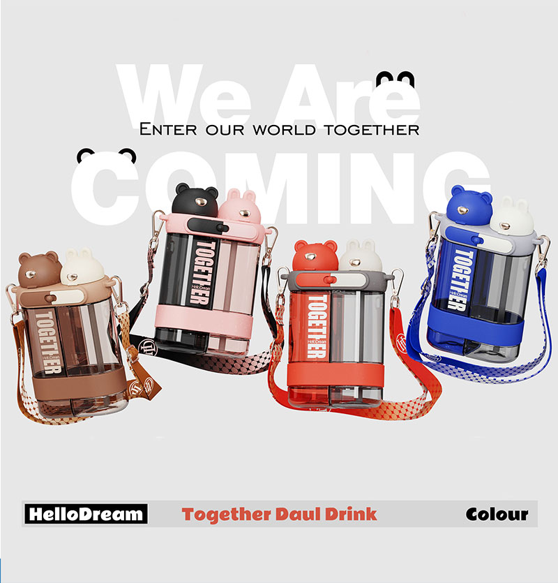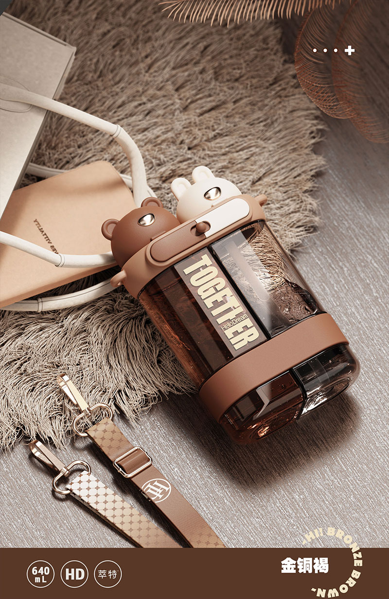 样品星兔创意卡通水杯儿童弹跳吸管杯可爱运动户外背带学生塑料杯