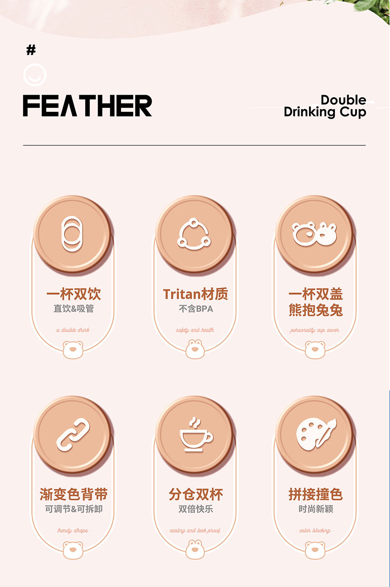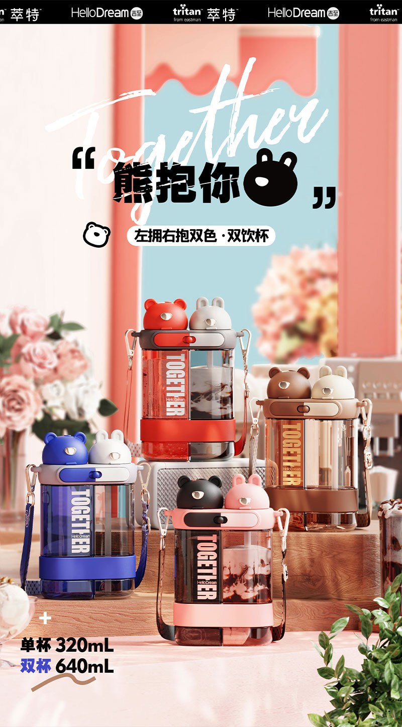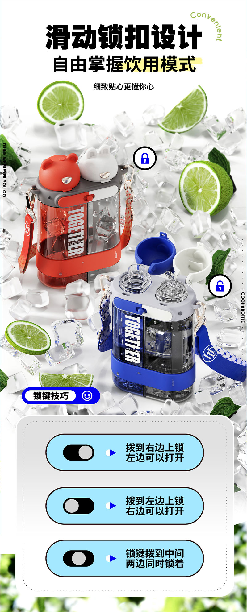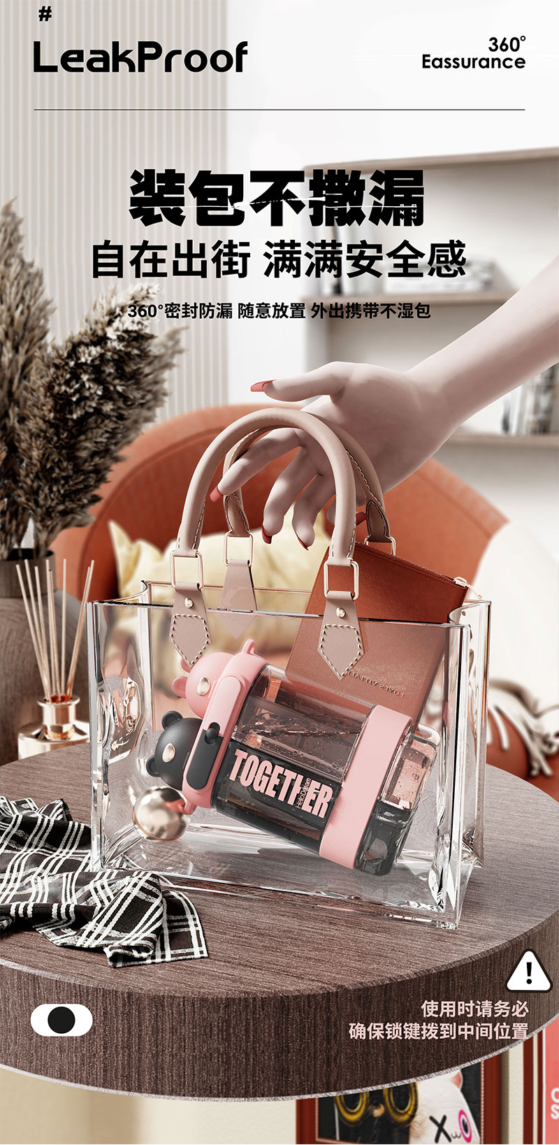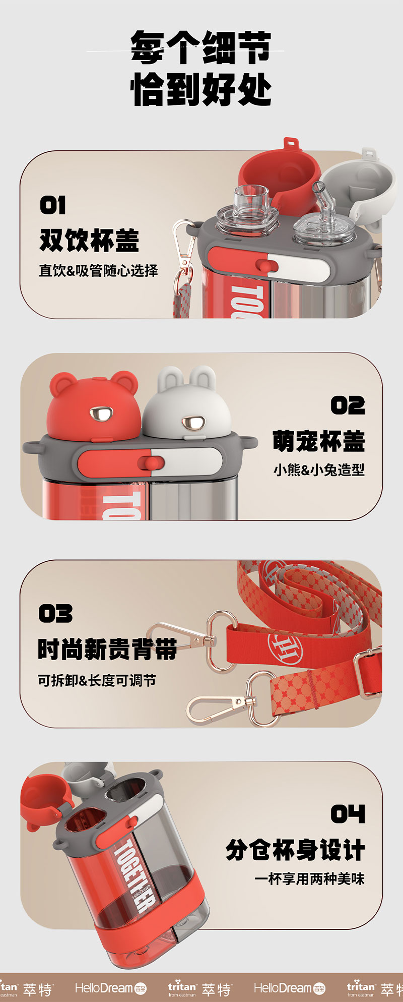 样品星兔创意卡通水杯儿童弹跳吸管杯可爱运动户外背带学生塑料杯