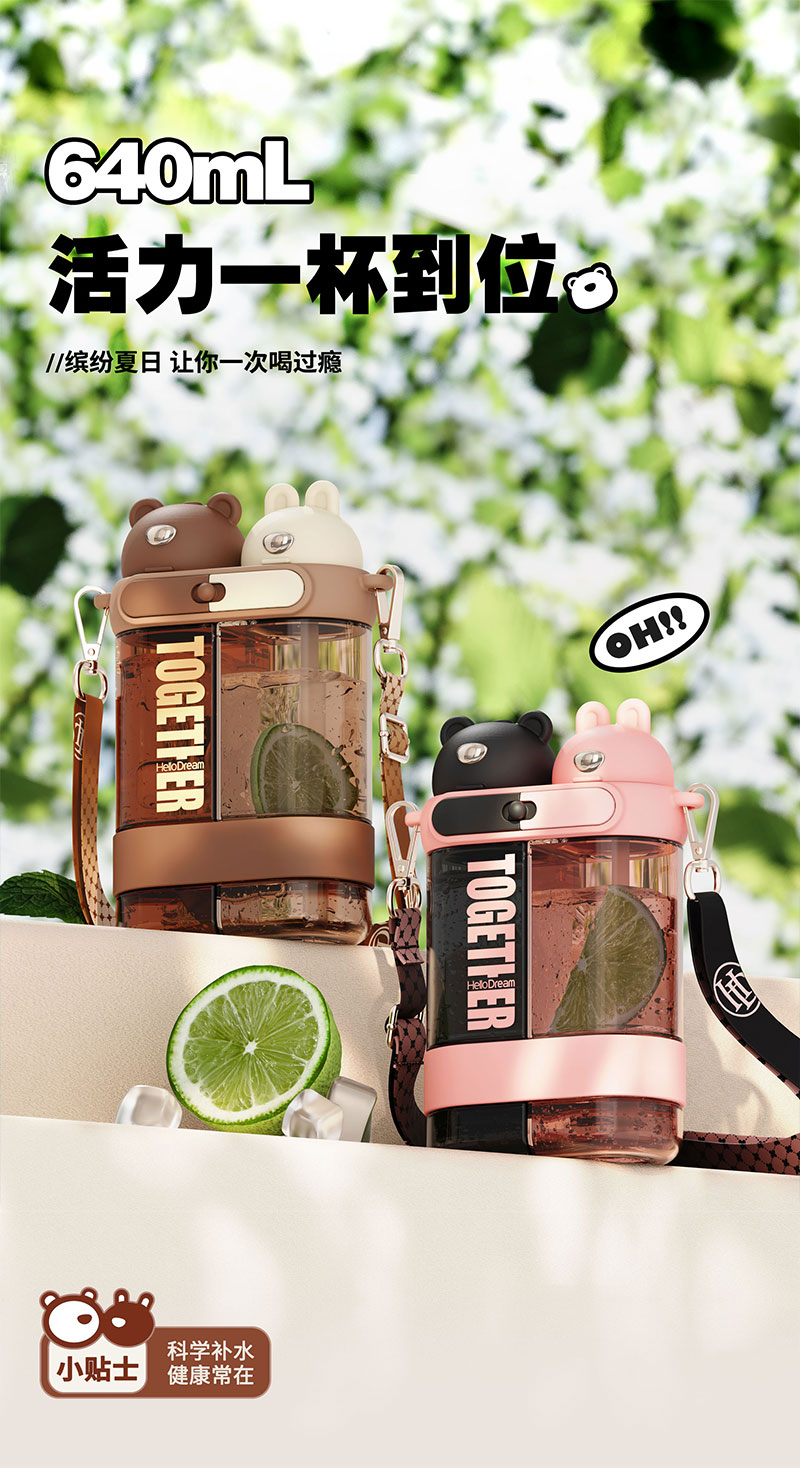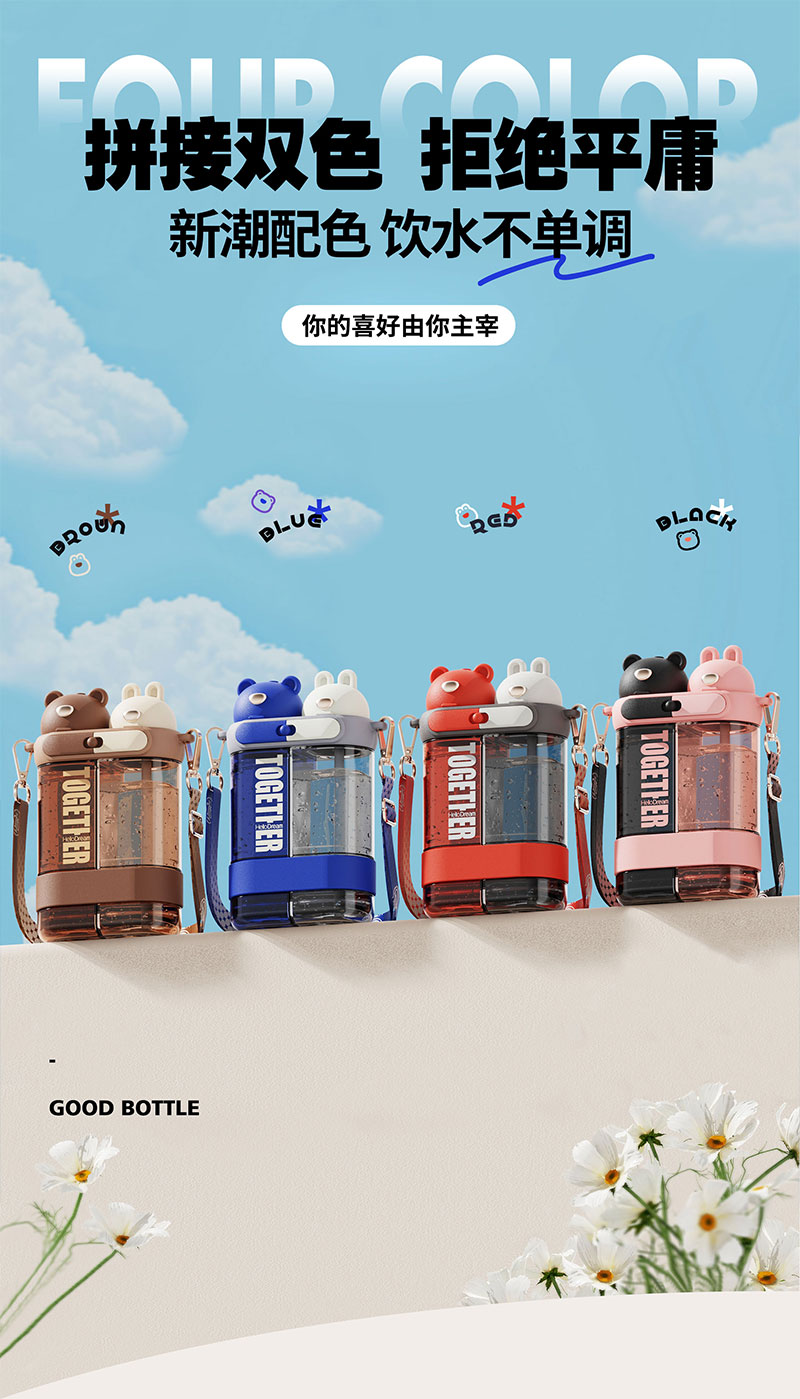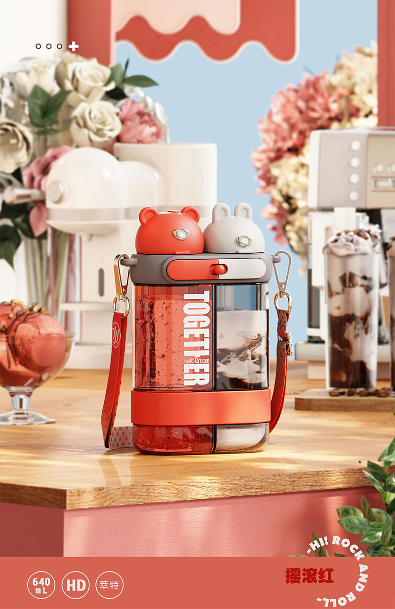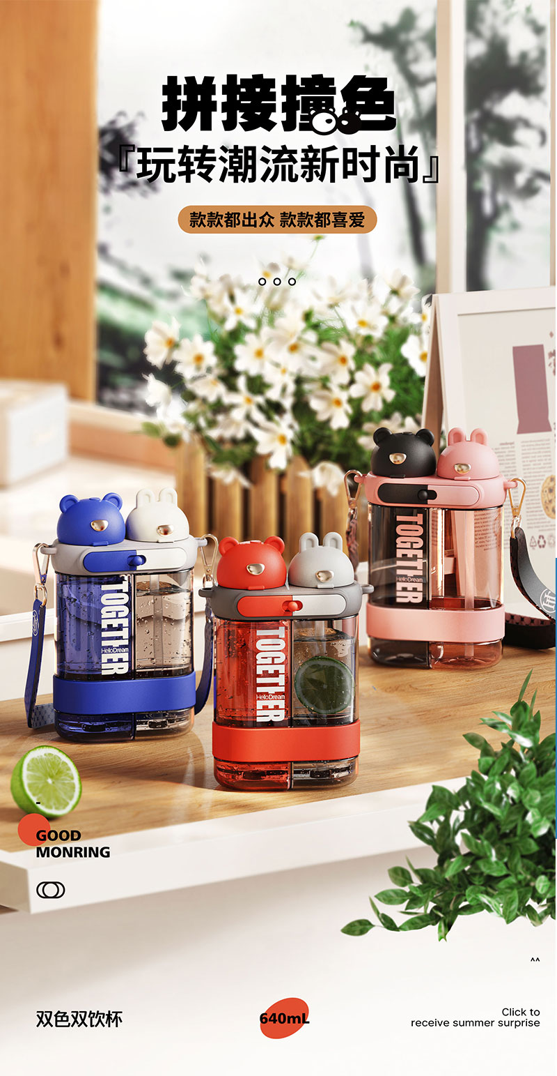 儿童吸管水杯夏天大容量可爱杯子女生高颜值搅拌杯耐高温塑料水壶