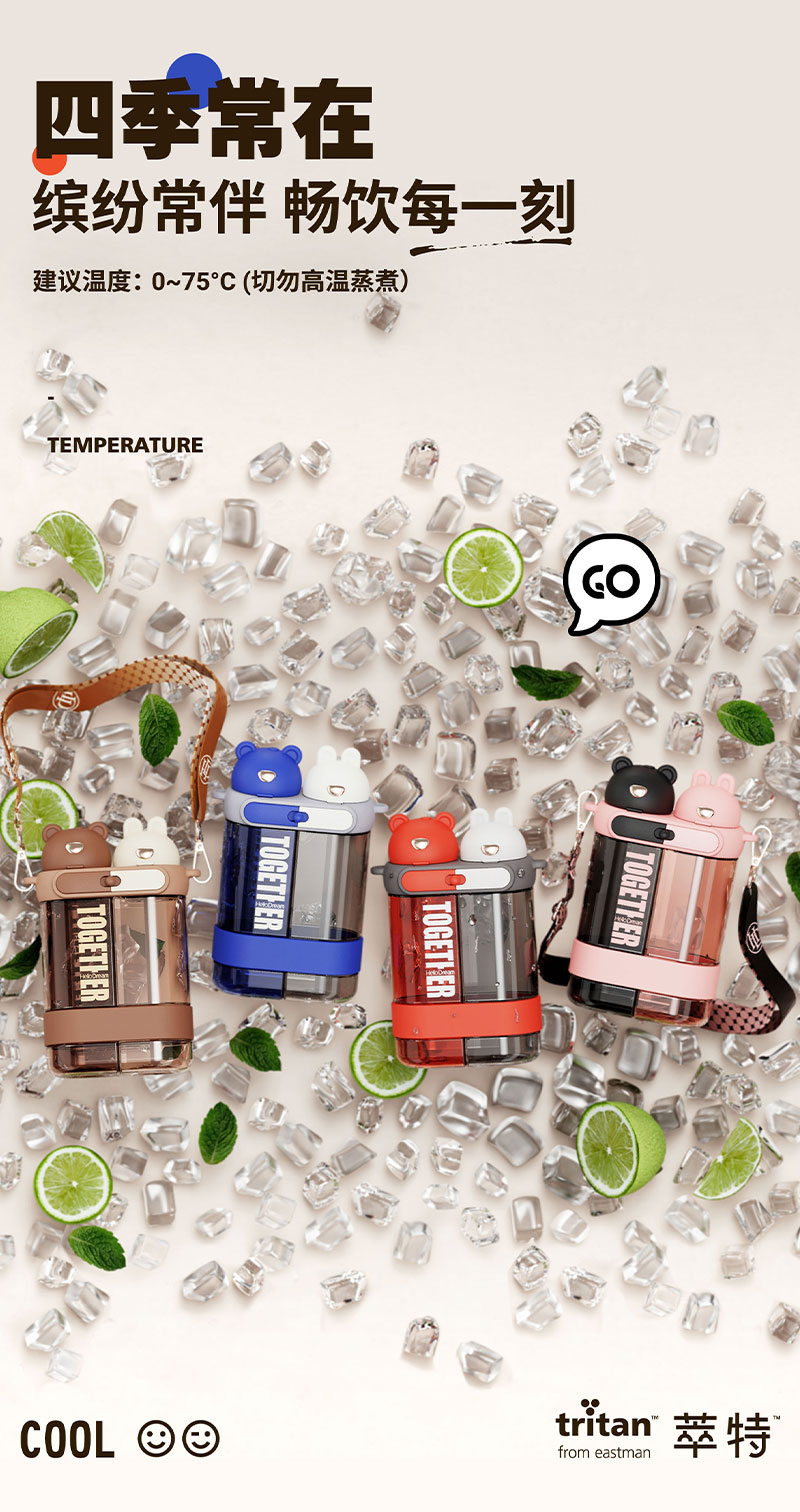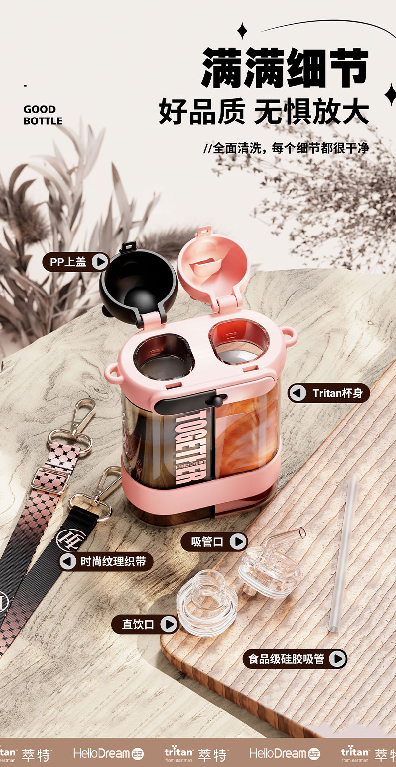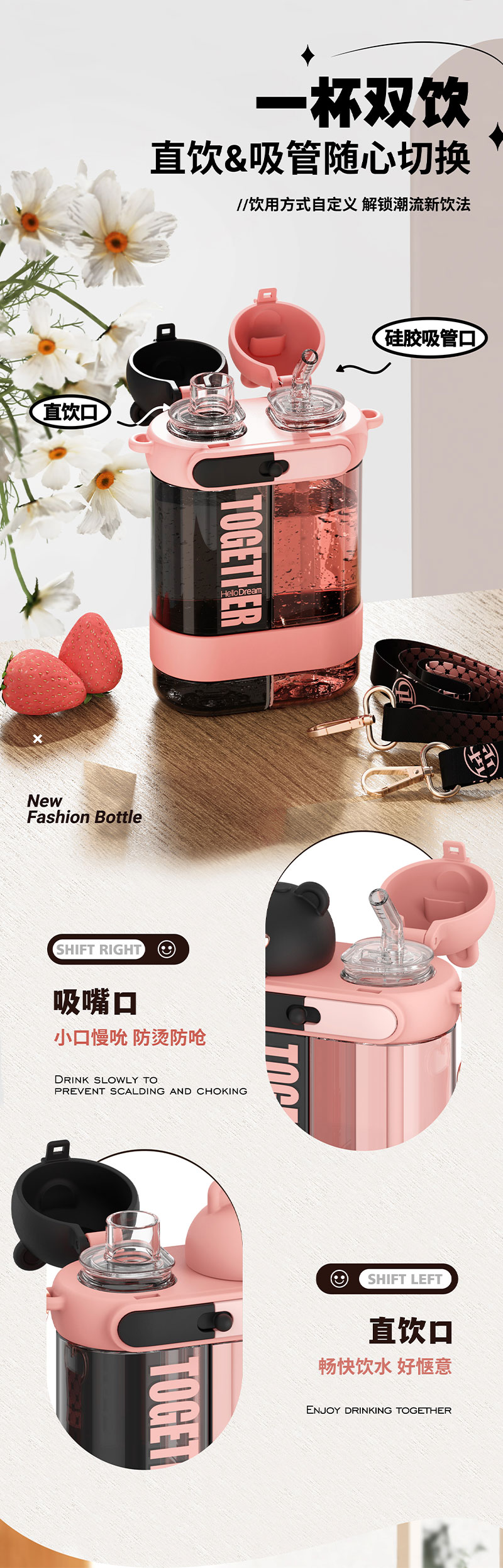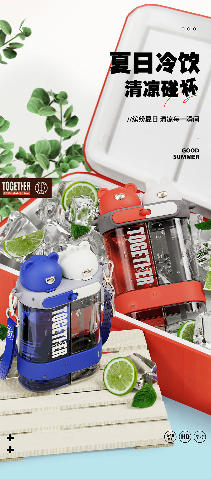 儿童吸管水杯夏天大容量可爱杯子女生高颜值搅拌杯耐高温塑料水壶
