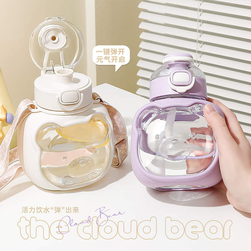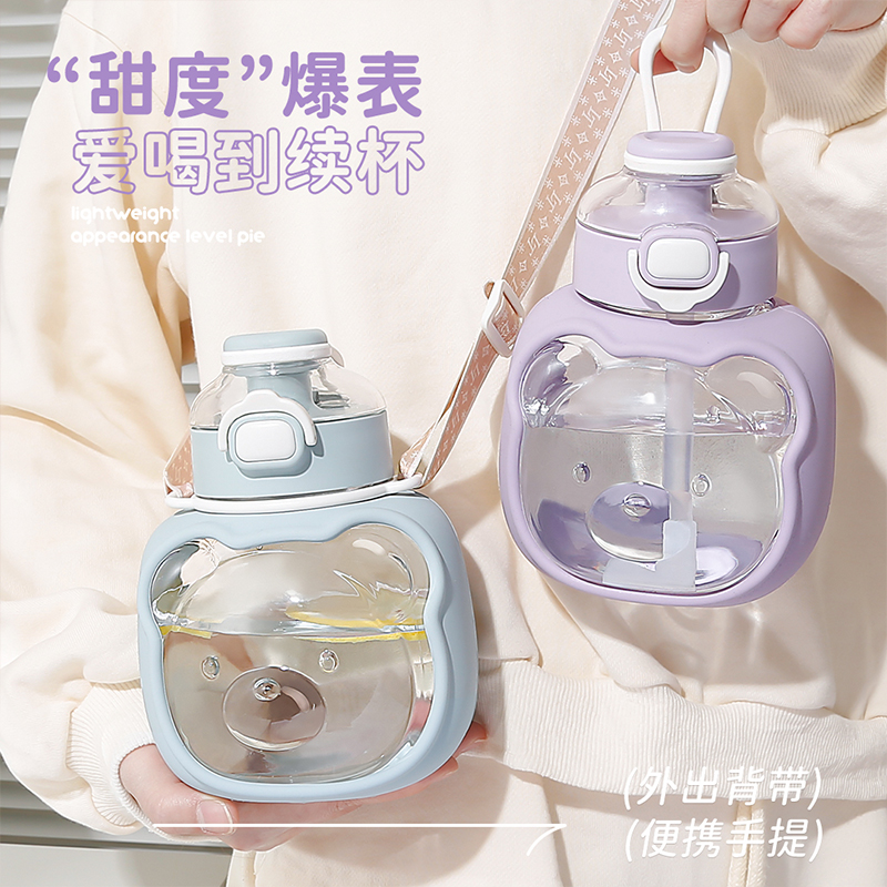 样品星兔创意卡通水杯儿童弹跳吸管杯可爱运动户外背带学生塑料杯