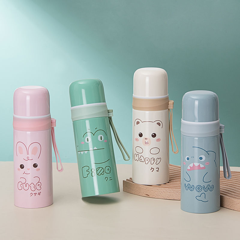350ML卡通动物笔芯塑吊保温杯304不锈钢子弹头水杯