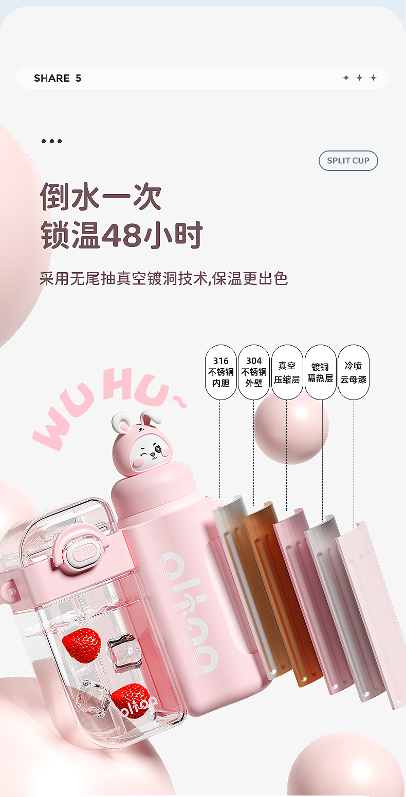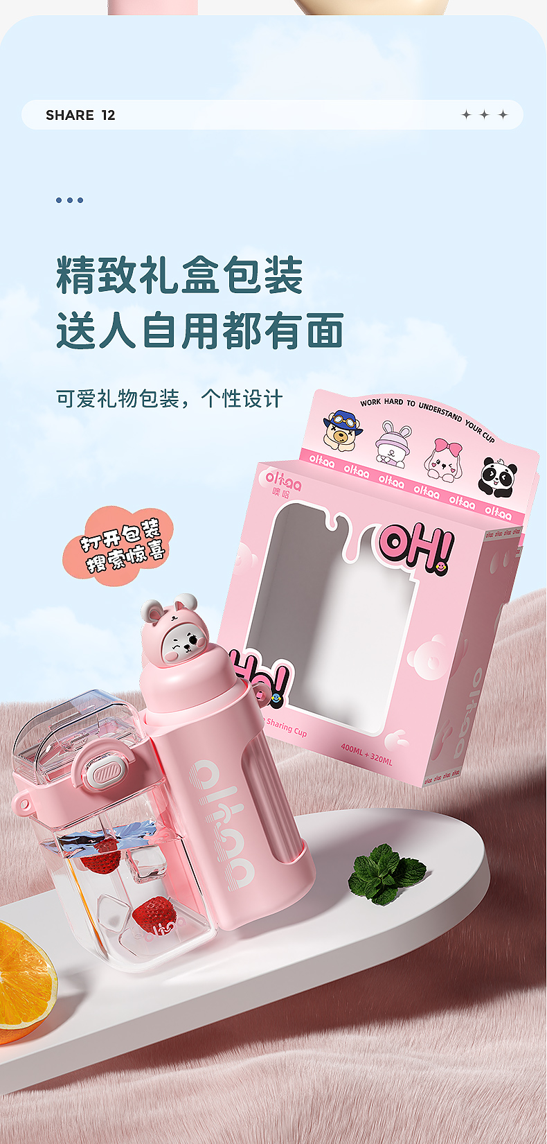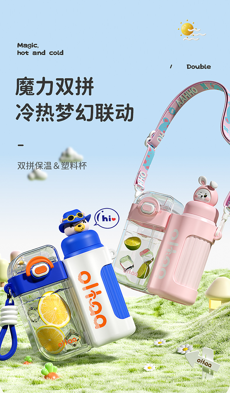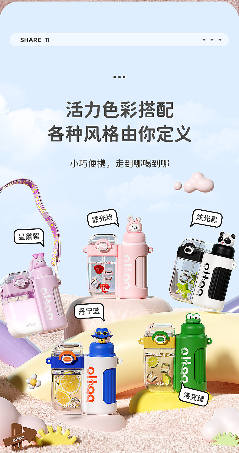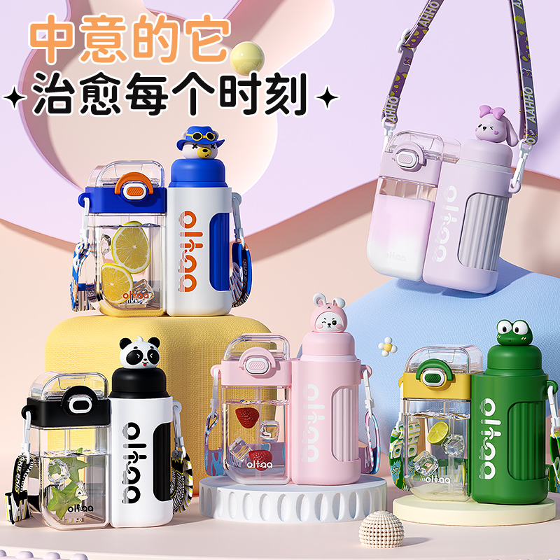 儿童吸管水杯夏天大容量可爱杯子女生高颜值搅拌杯耐高温塑料水壶