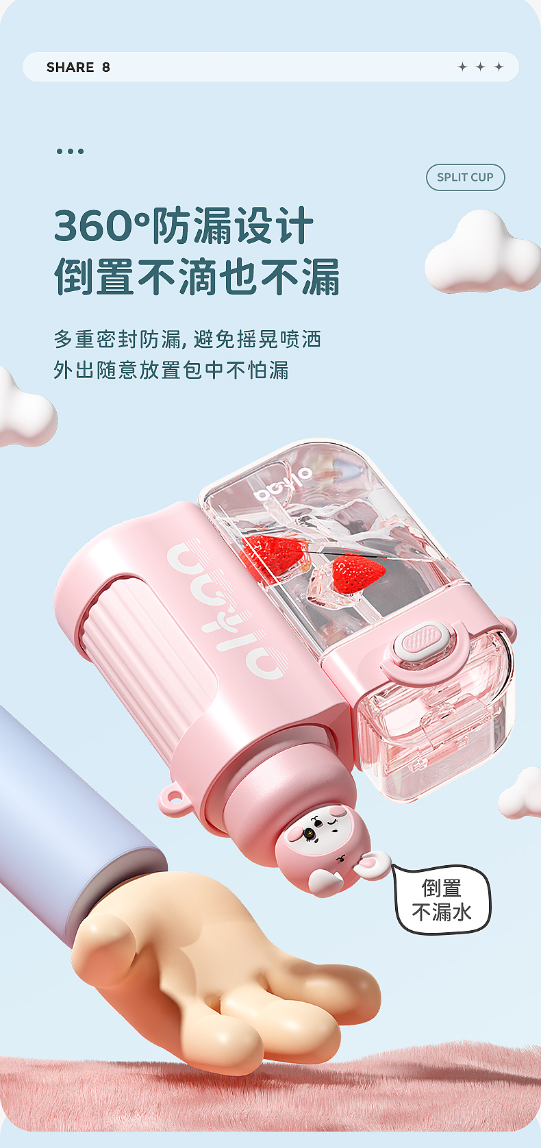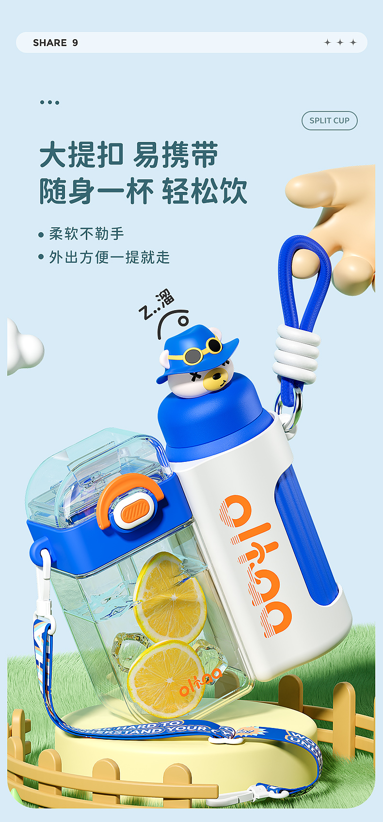 样品星兔创意卡通水杯儿童弹跳吸管杯可爱运动户外背带学生塑料杯