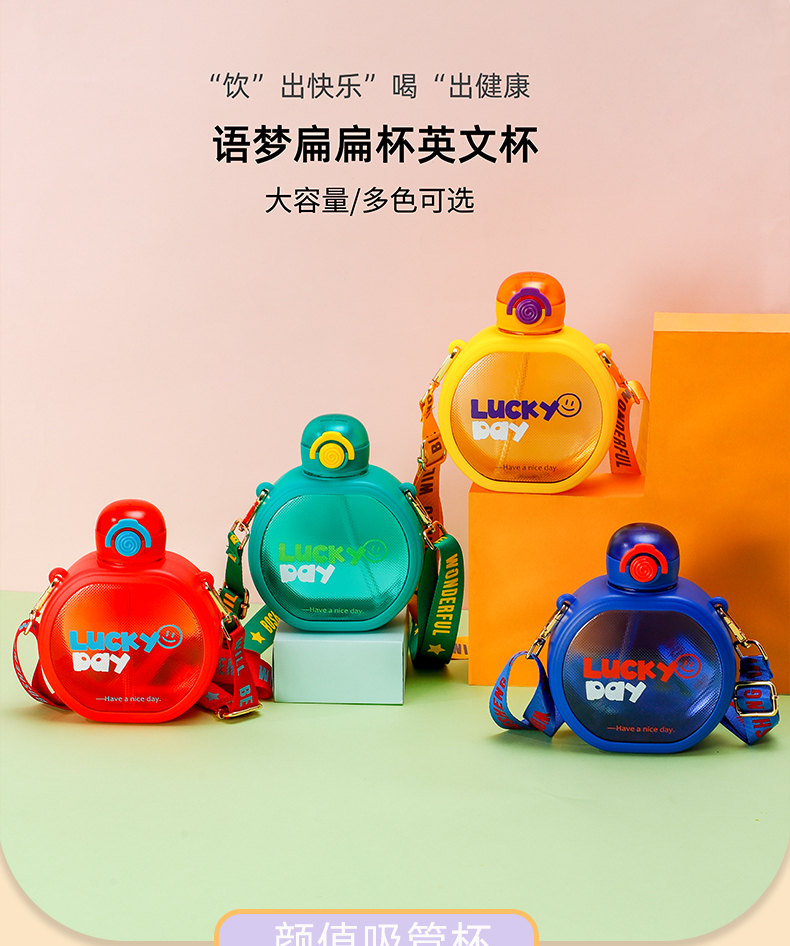 样品星兔创意卡通水杯儿童弹跳吸管杯可爱运动户外背带学生塑料杯