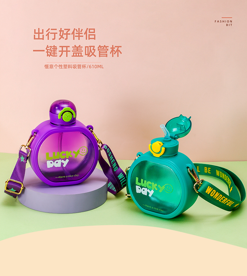 500ML亿本悦色太空杯创意手提绳便携带塑料杯