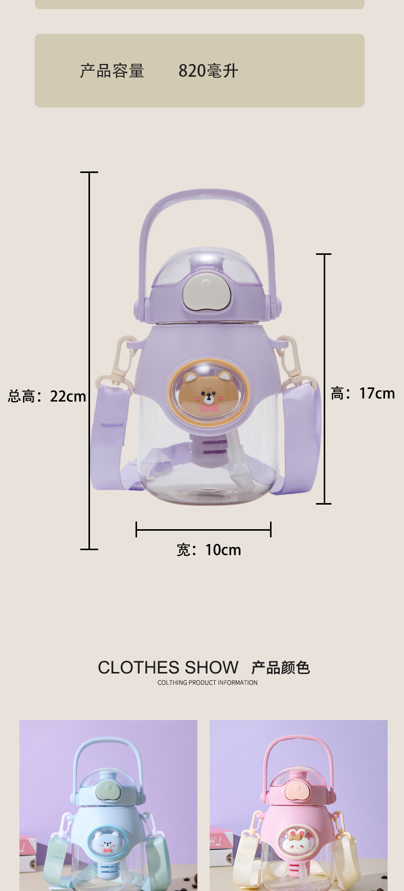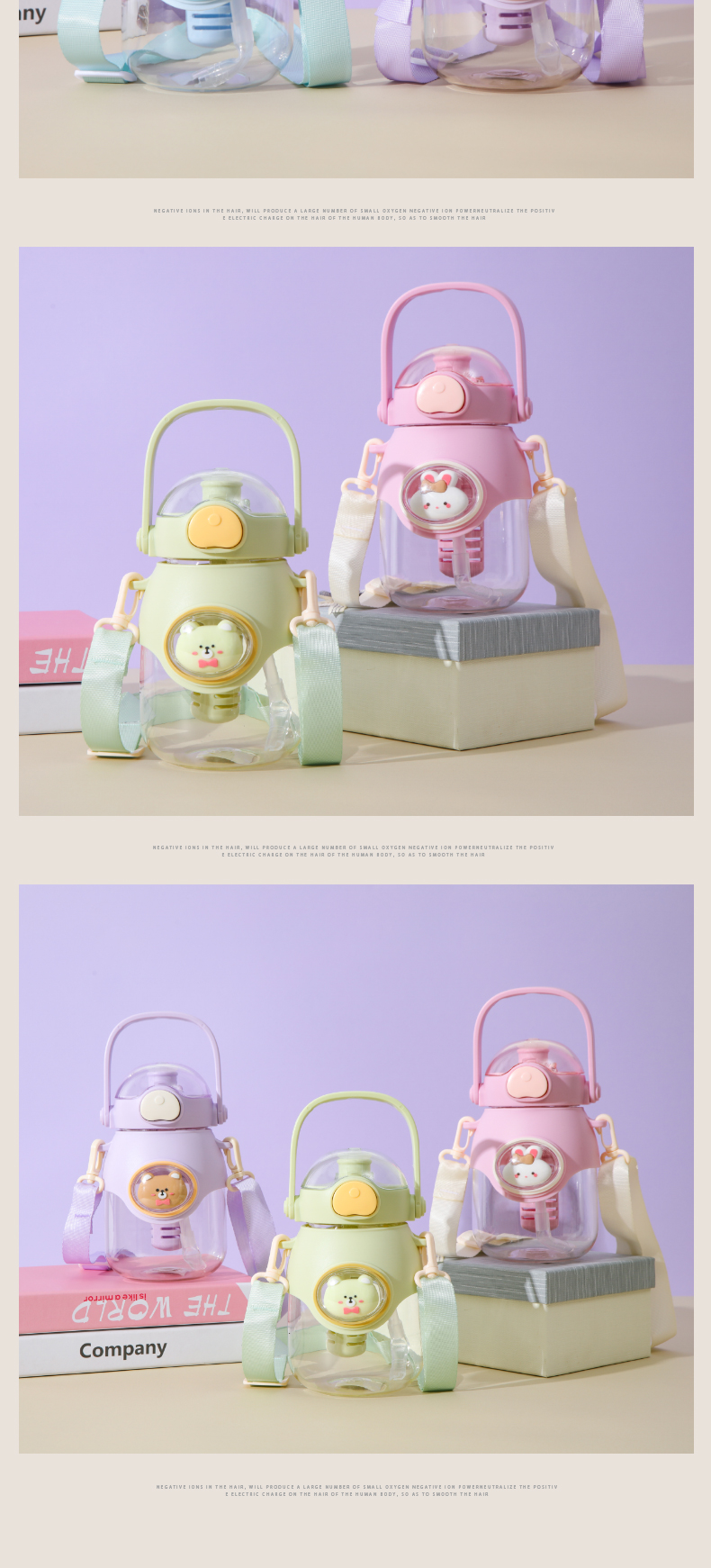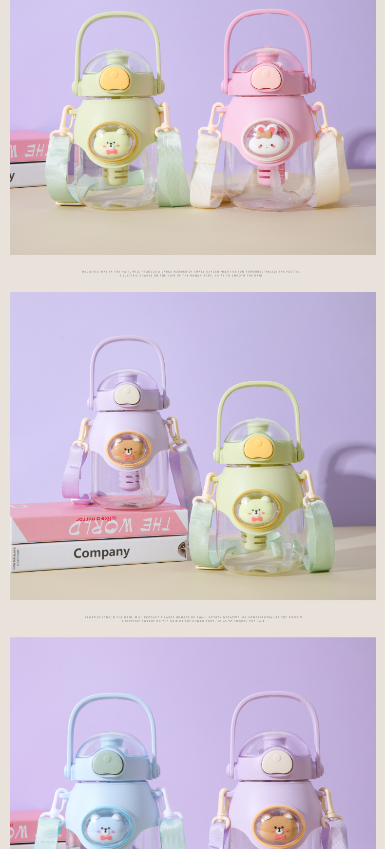 样品星兔创意卡通水杯儿童弹跳吸管杯可爱运动户外背带学生塑料杯