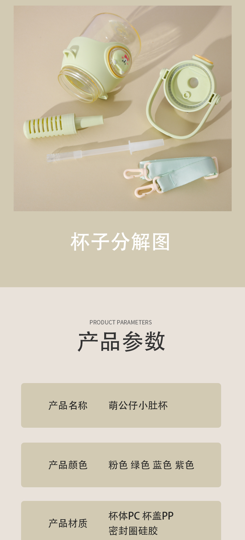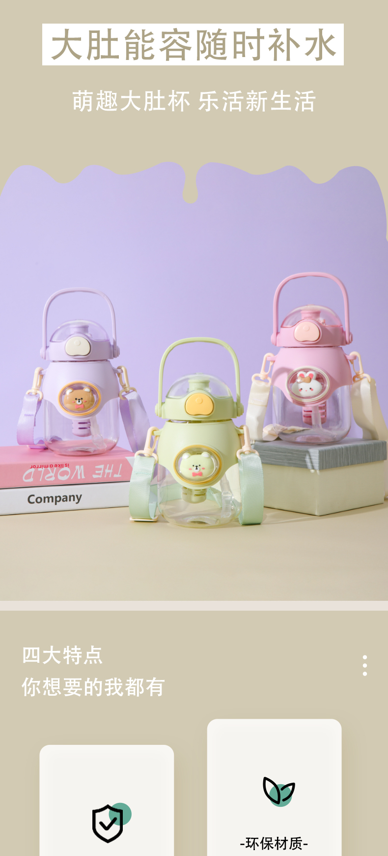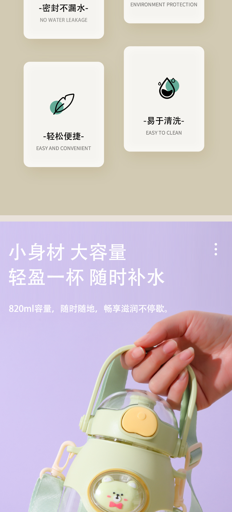 样品星兔创意卡通水杯儿童弹跳吸管杯可爱运动户外背带学生塑料杯