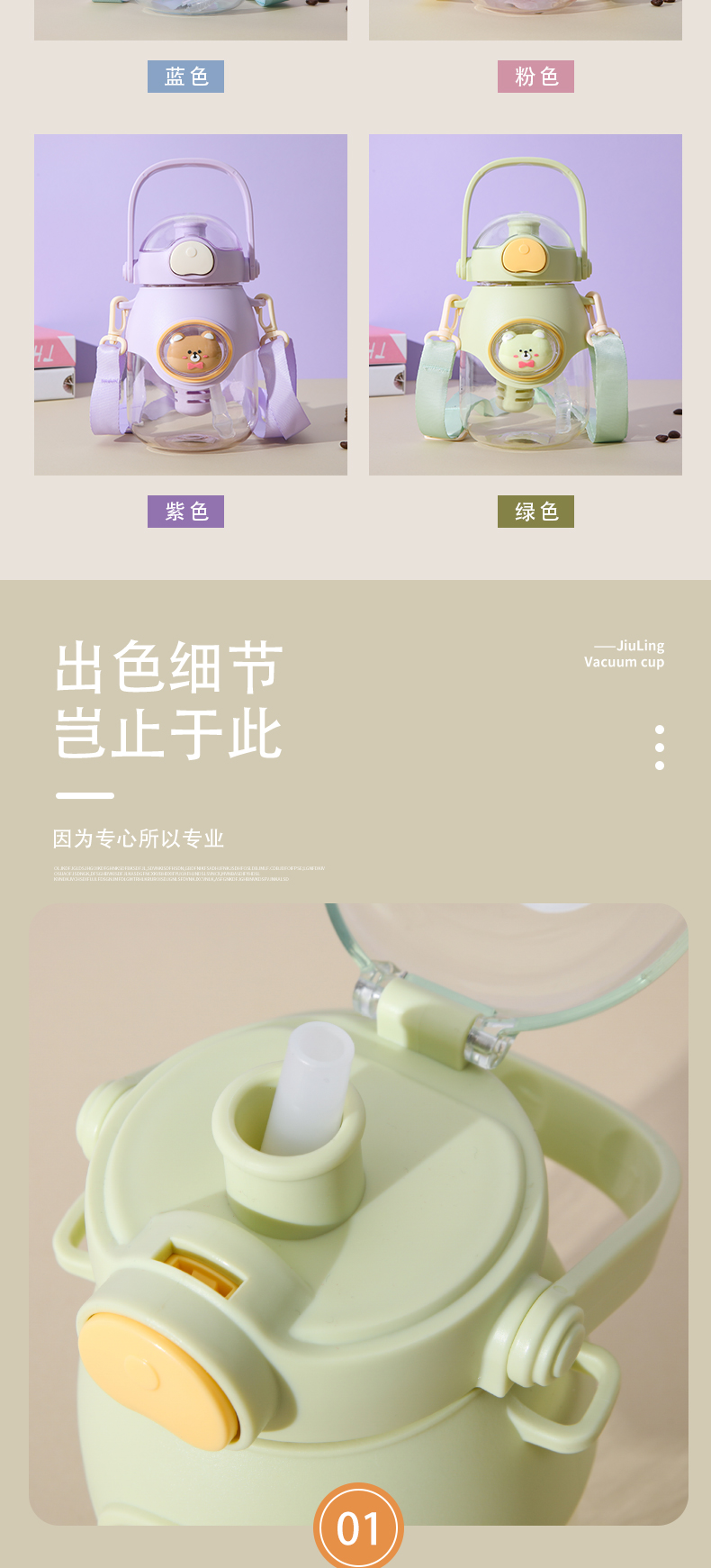儿童吸管水杯夏天大容量可爱杯子女生高颜值搅拌杯耐高温塑料水壶