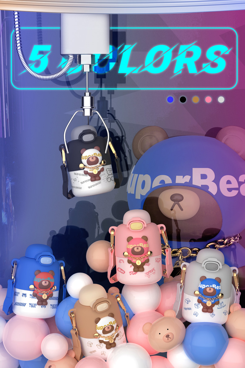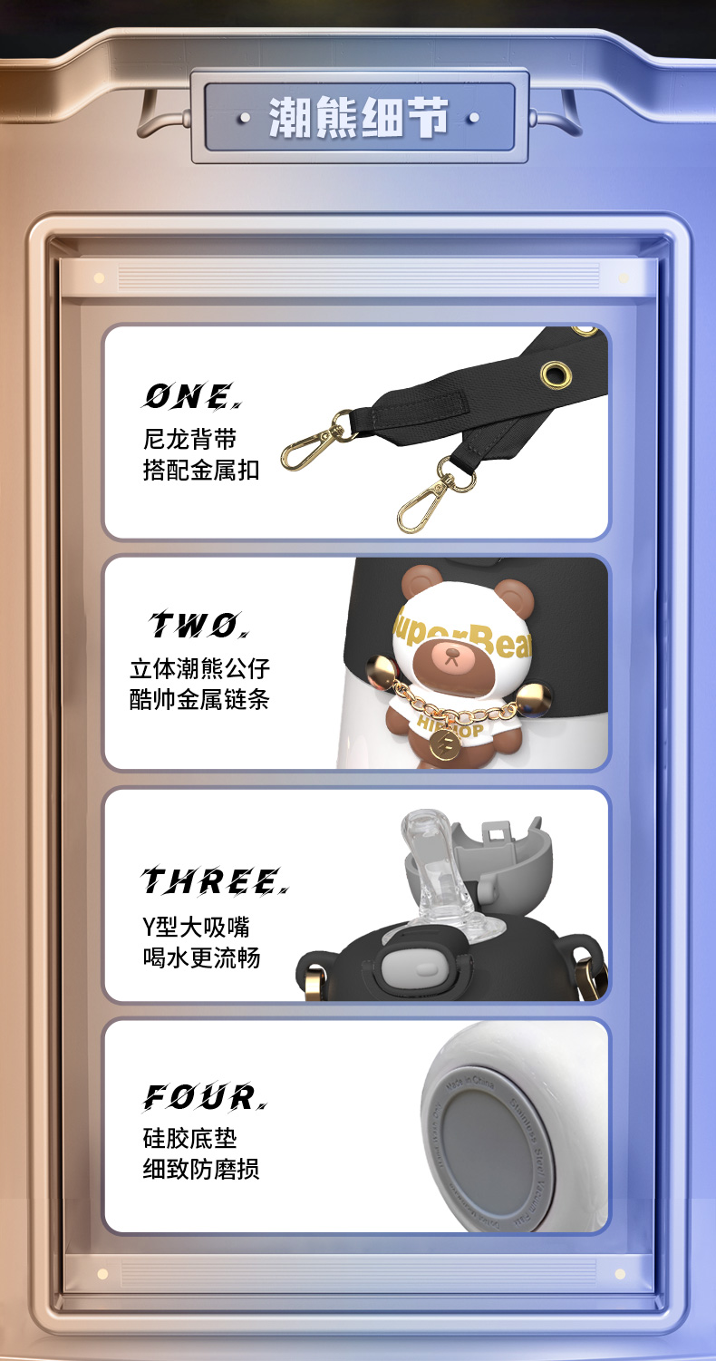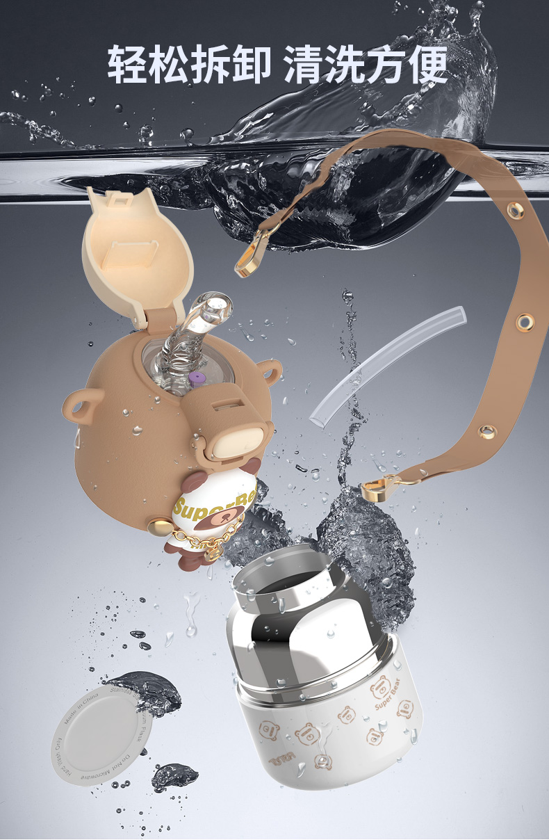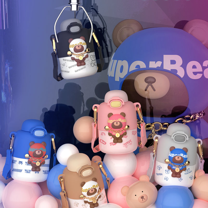 样品星兔创意卡通水杯儿童弹跳吸管杯可爱运动户外背带学生塑料杯