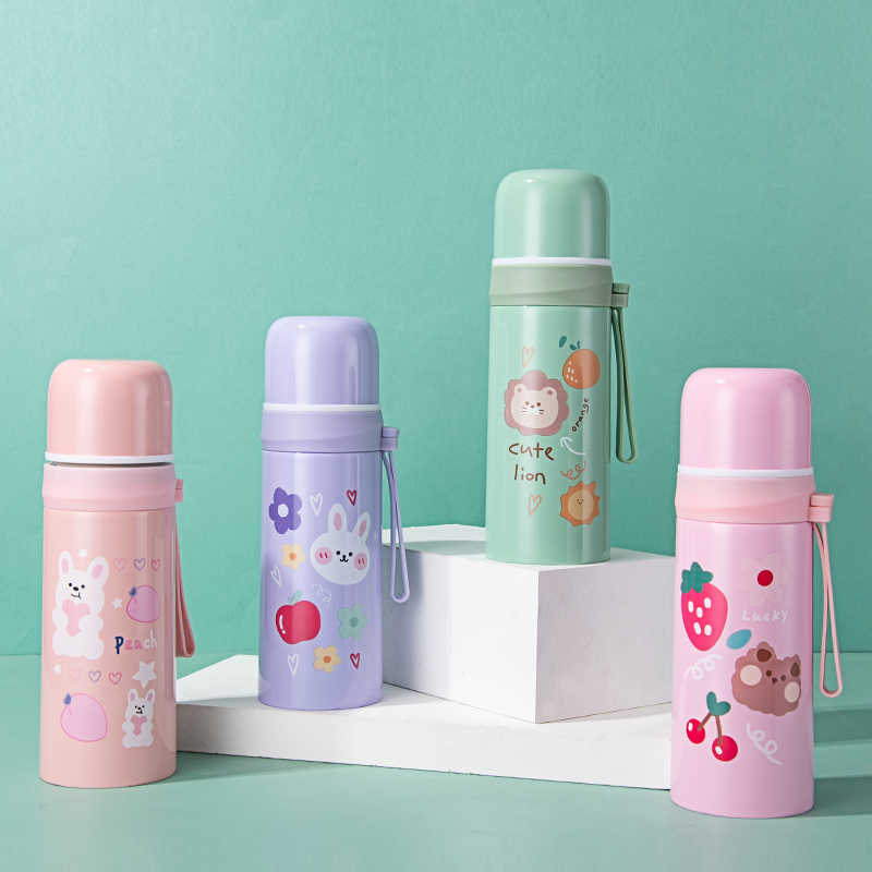 350ML卡通水果动物塑吊保温杯304不锈钢便携提手杯子