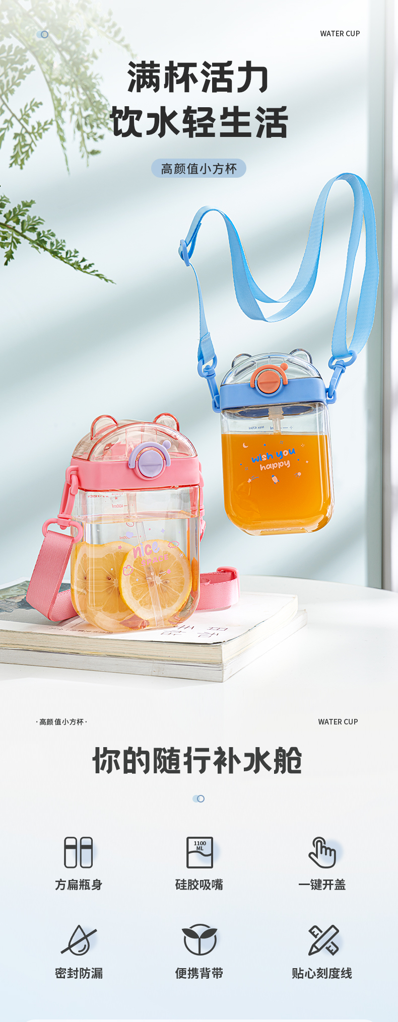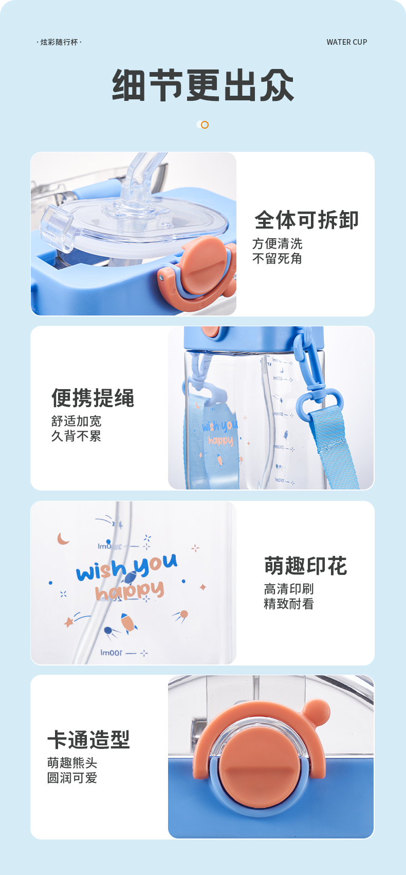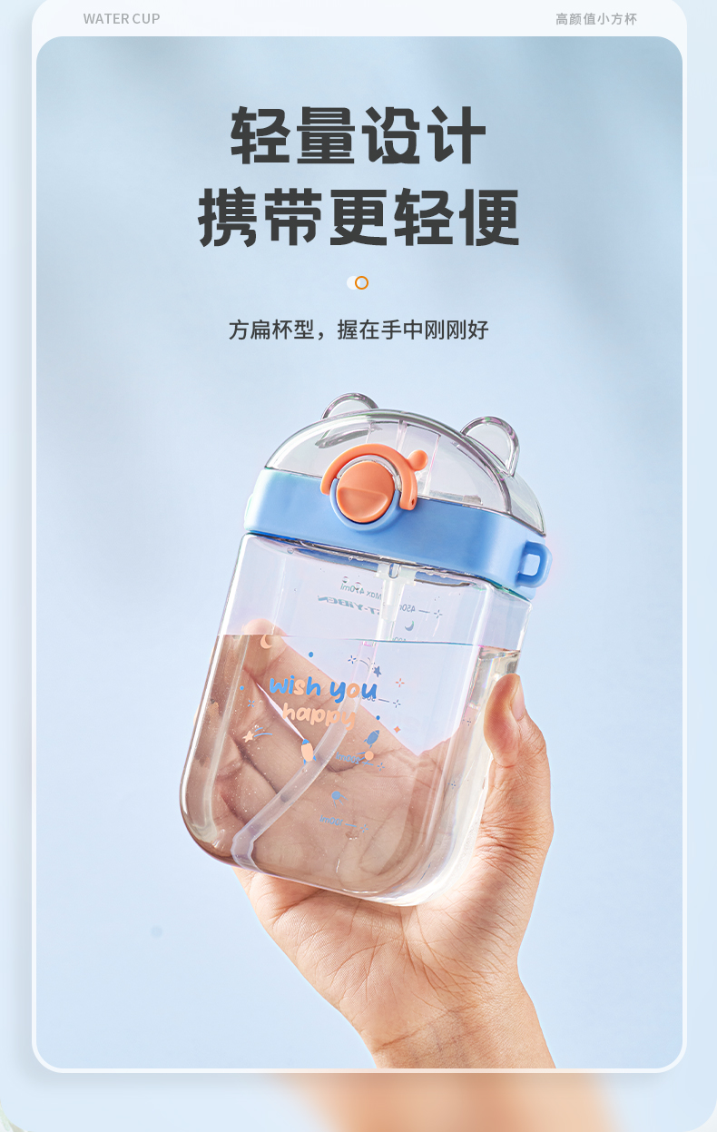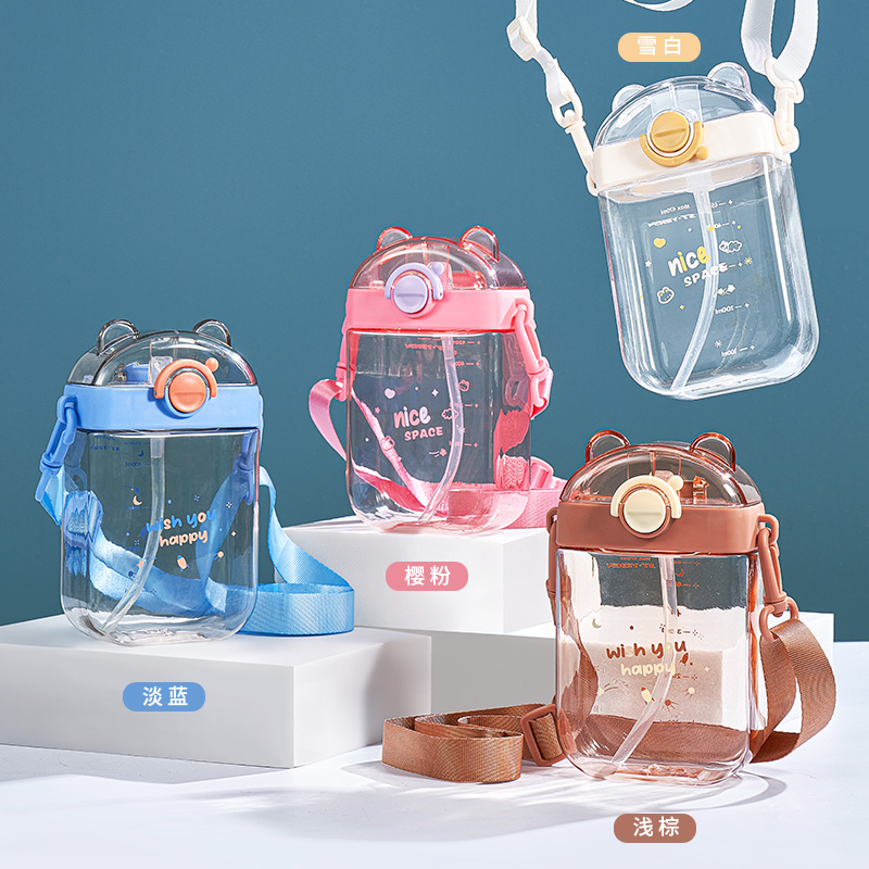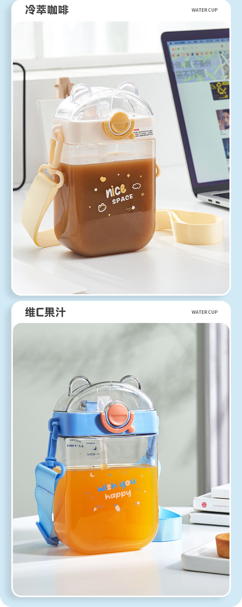 样品星兔创意卡通水杯儿童弹跳吸管杯可爱运动户外背带学生塑料杯