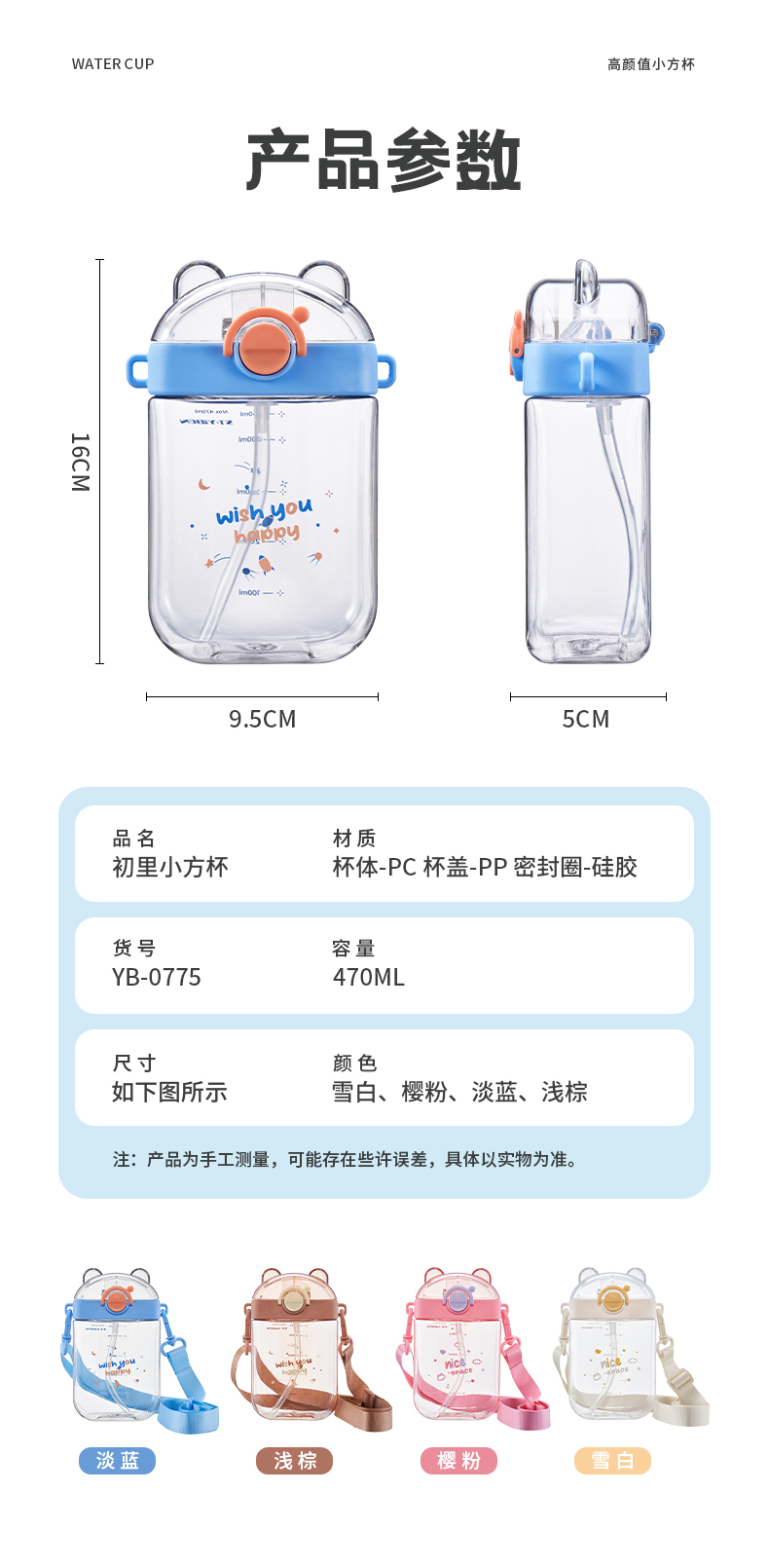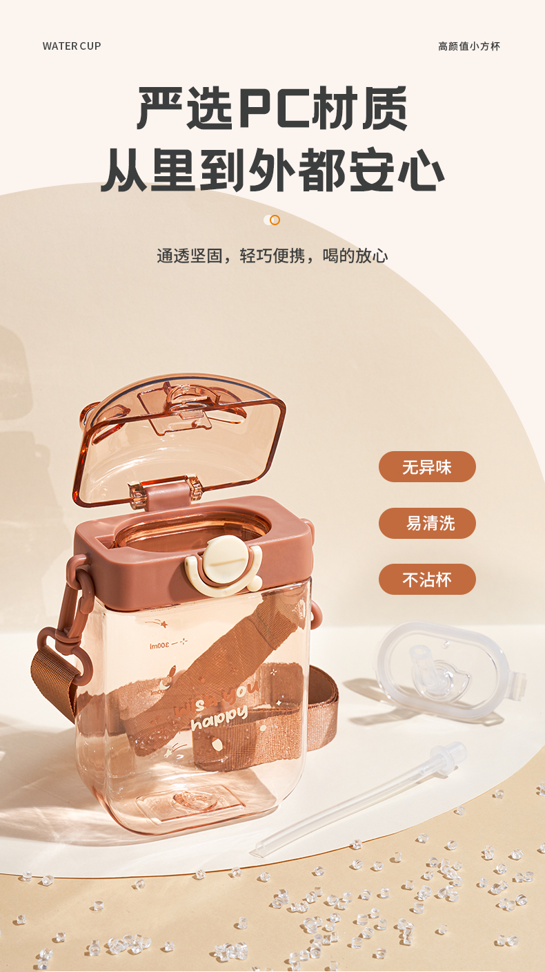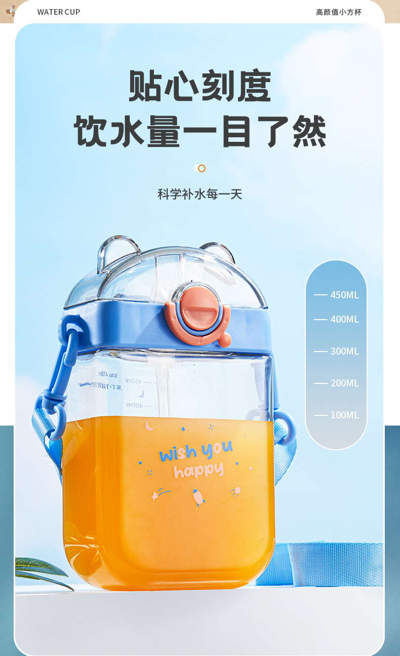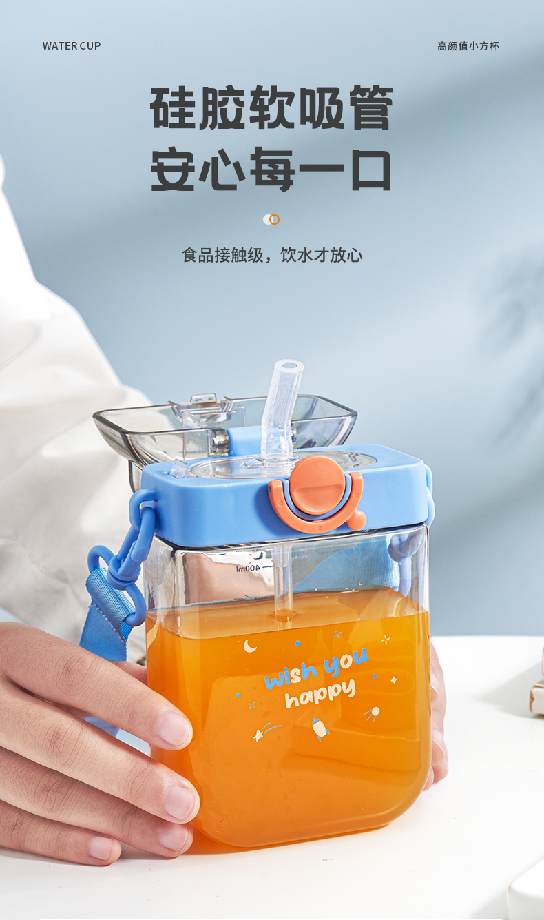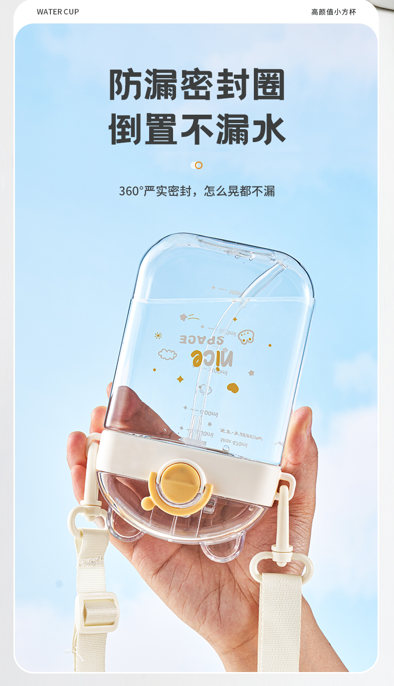 样品星兔创意卡通水杯儿童弹跳吸管杯可爱运动户外背带学生塑料杯
