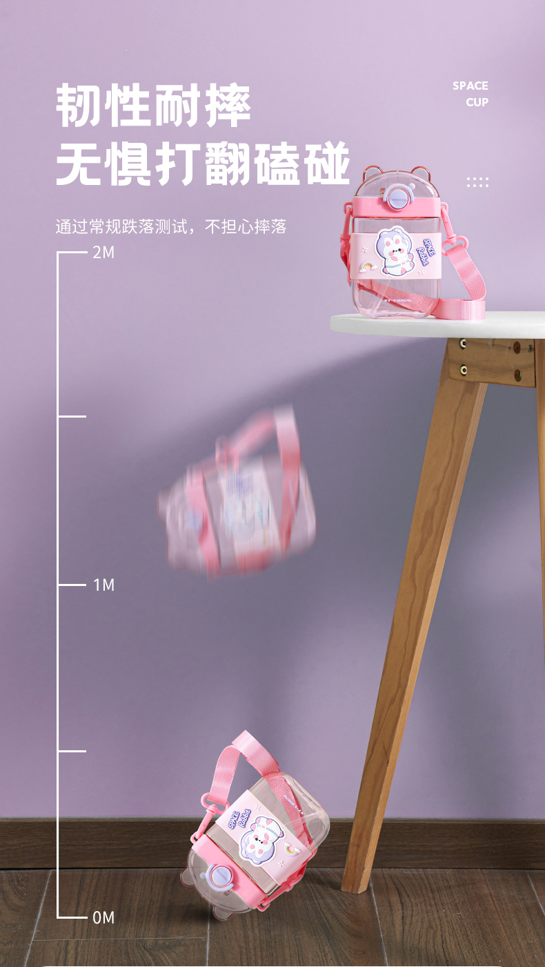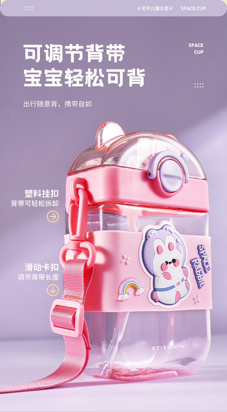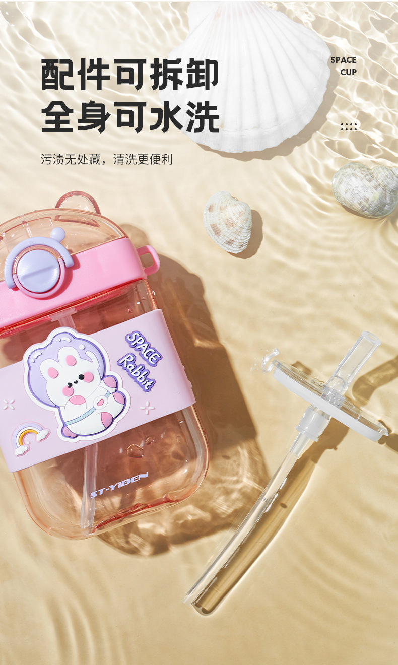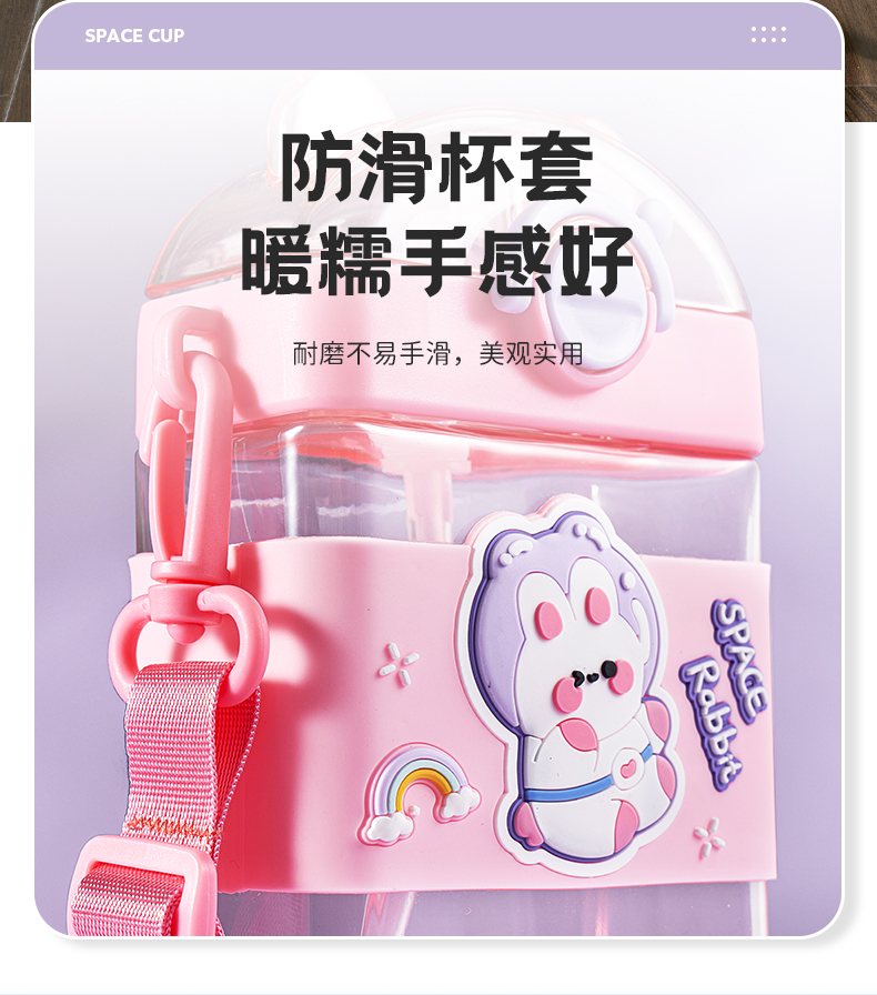 样品星兔创意卡通水杯儿童弹跳吸管杯可爱运动户外背带学生塑料杯
