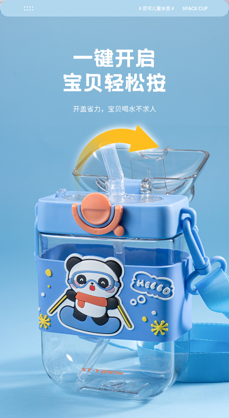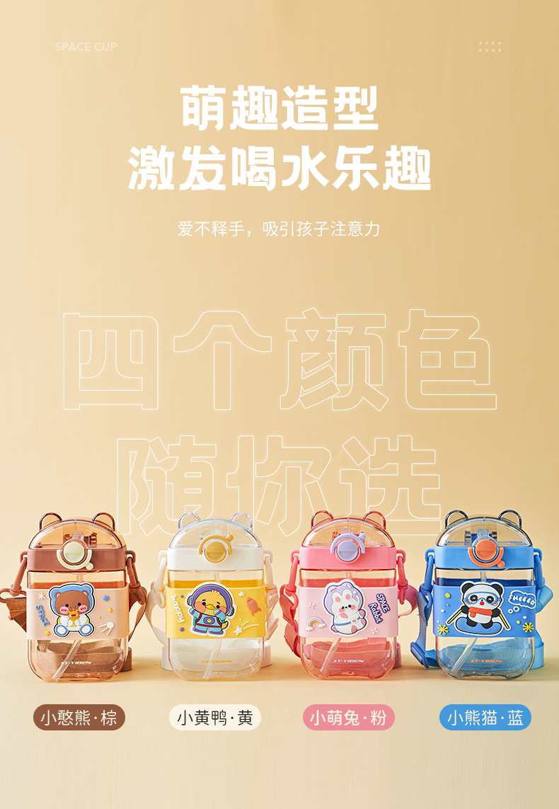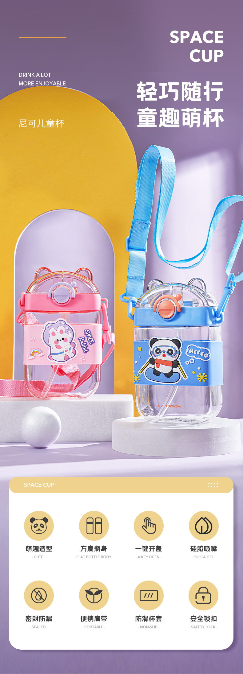 样品星兔创意卡通水杯儿童弹跳吸管杯可爱运动户外背带学生塑料杯