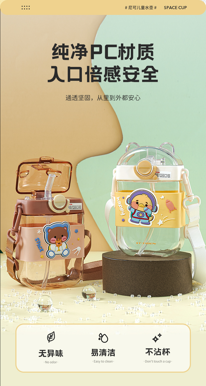 儿童吸管水杯夏天大容量可爱杯子女生高颜值搅拌杯耐高温塑料水壶