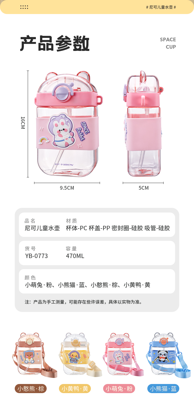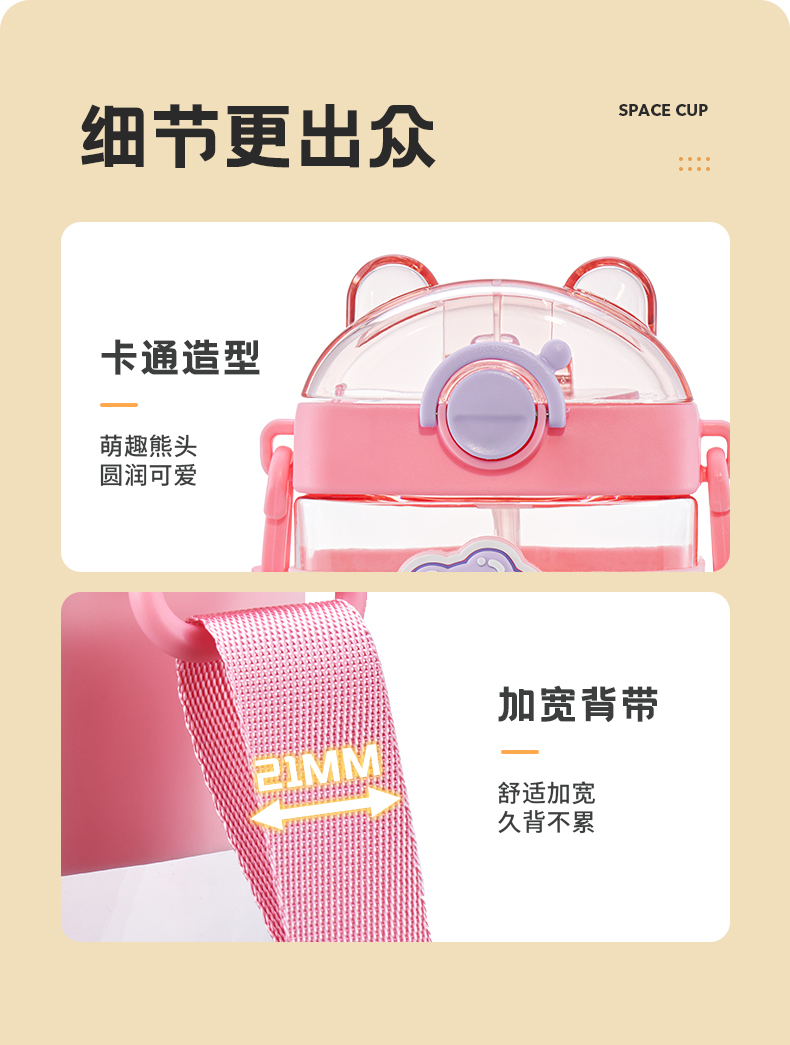 570ml亿本可萌儿童塑料杯清新可爱吸管水杯(OPP袋)