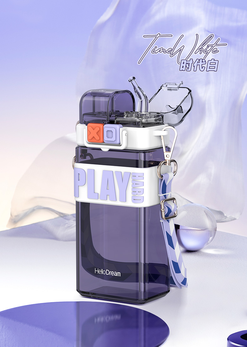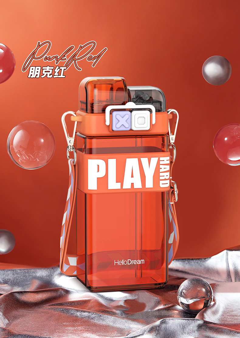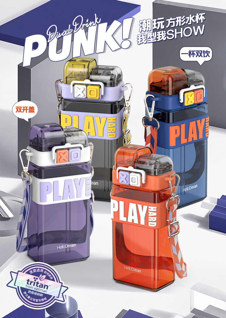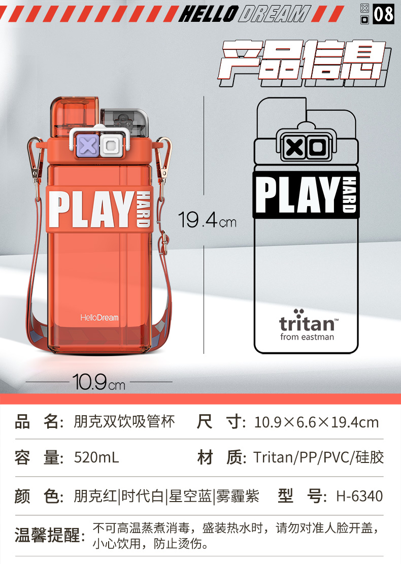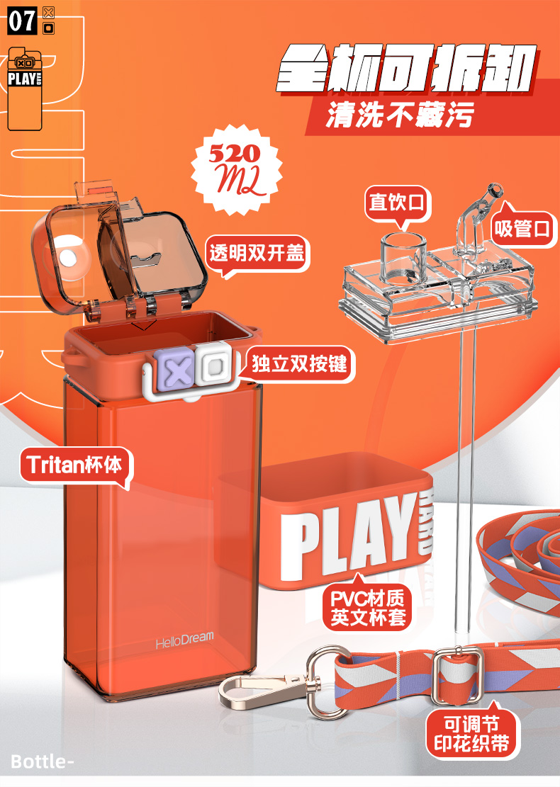 样品星兔创意卡通水杯儿童弹跳吸管杯可爱运动户外背带学生塑料杯