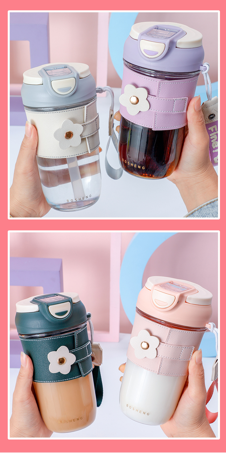 280ML欧彩水果双层玻璃杯学生韩版小清新防烫随手杯