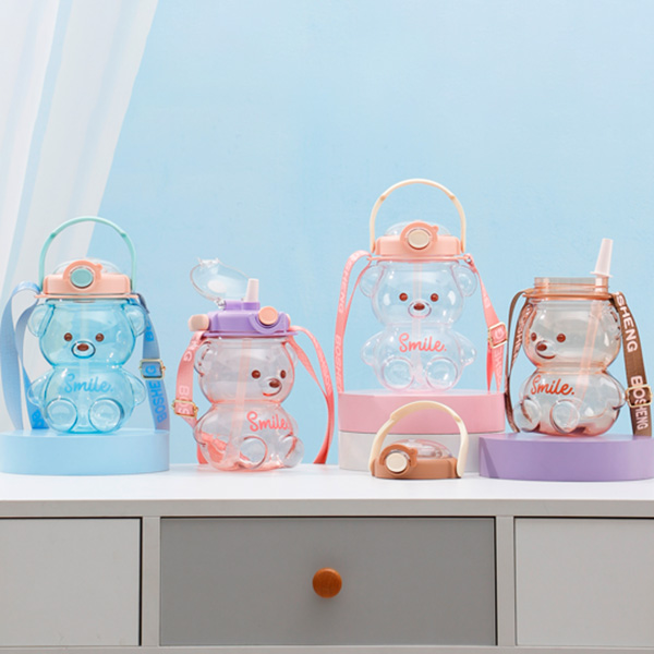 1400ml米多熊塑料杯大容量吸管杯高颜值网红水壶