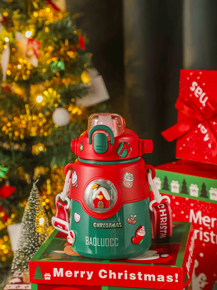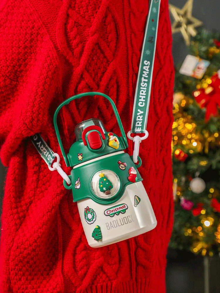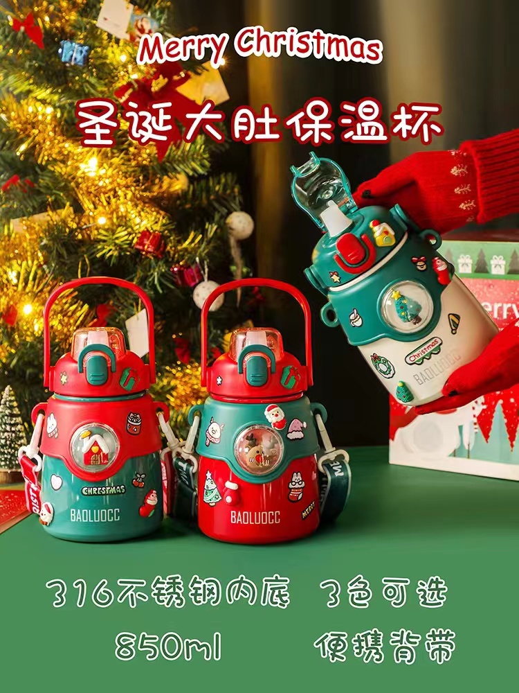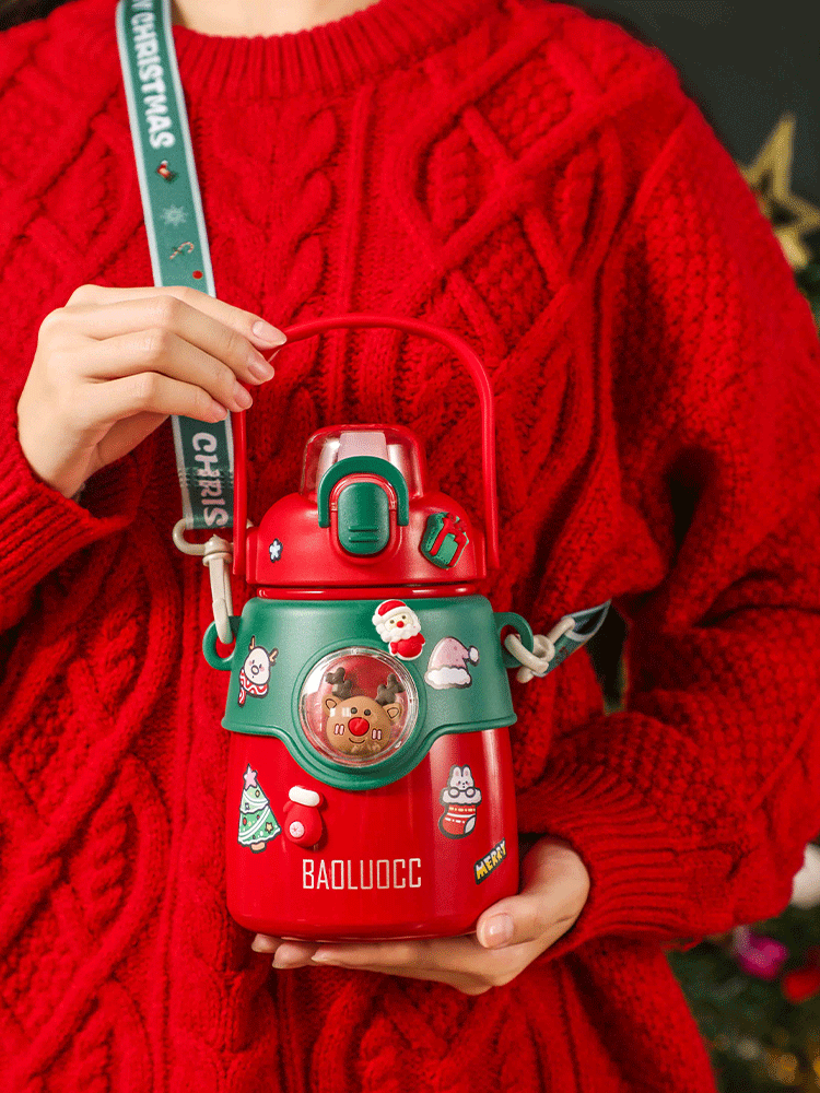 850ML萌趣提手大胖保温杯316不锈钢背带手提两用水杯