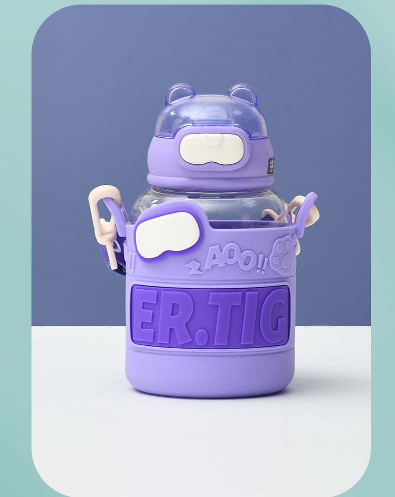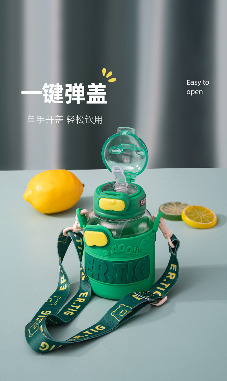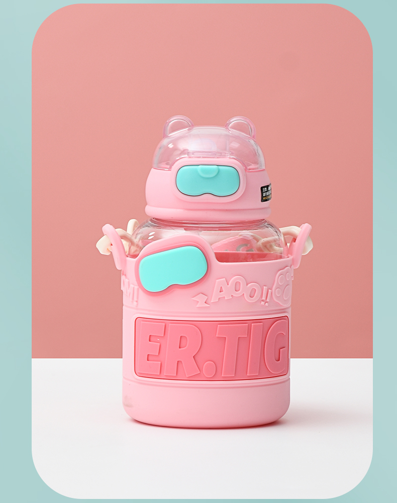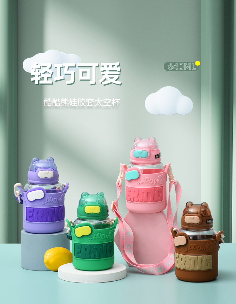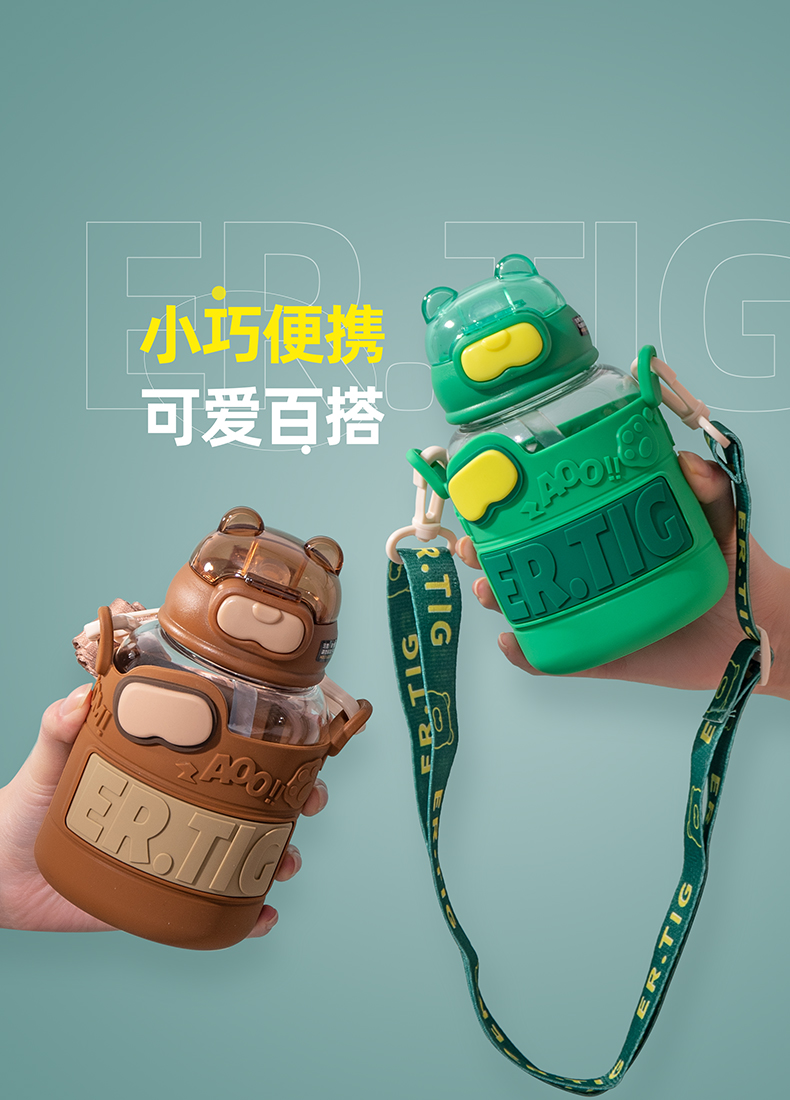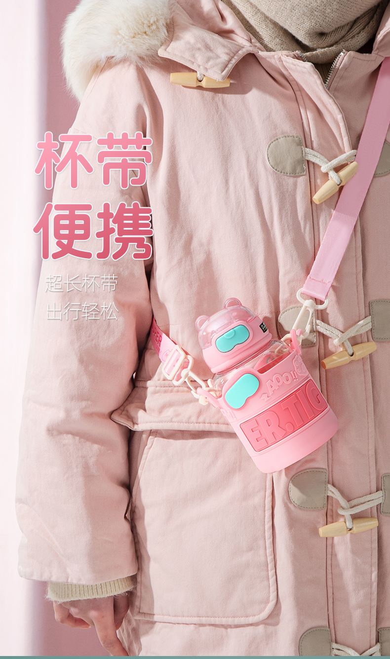 样品星兔创意卡通水杯儿童弹跳吸管杯可爱运动户外背带学生塑料杯
