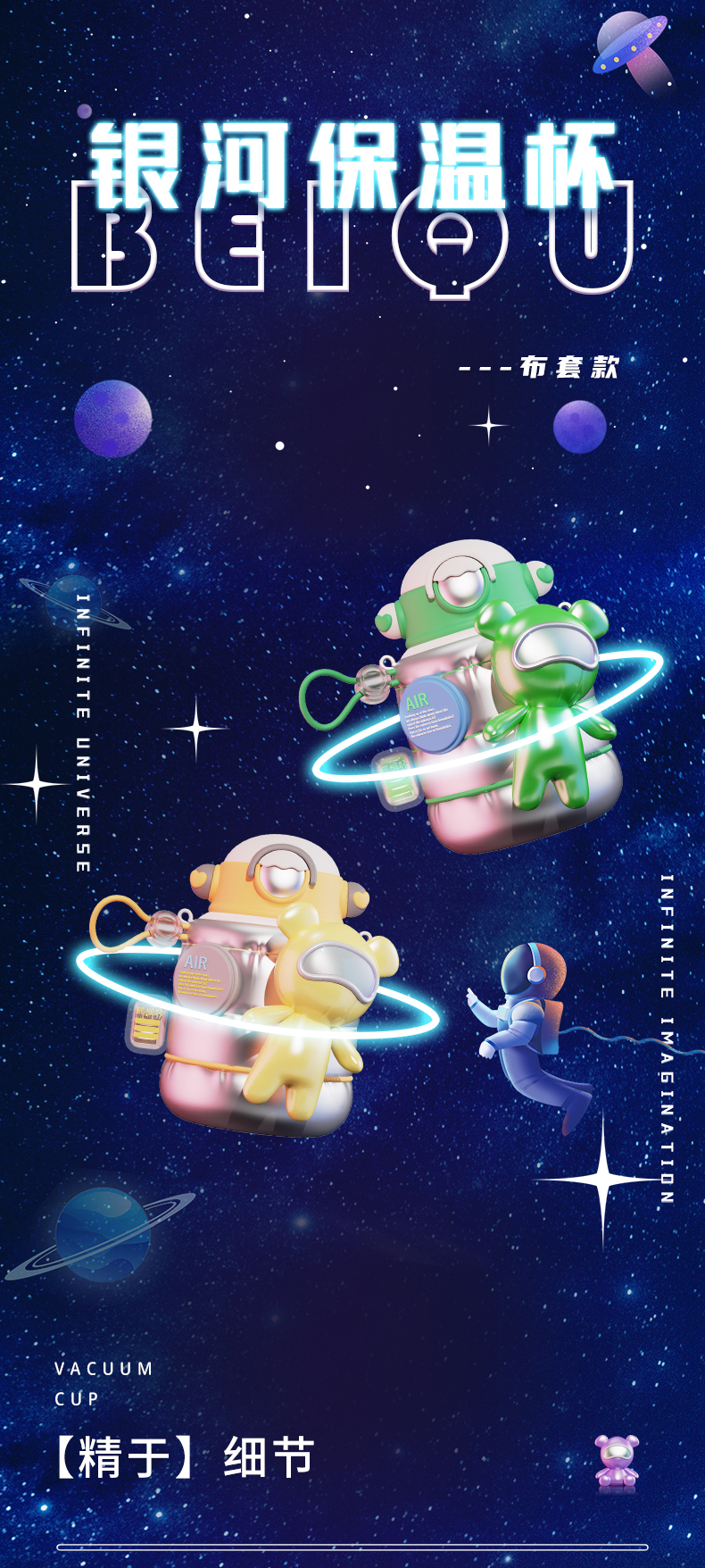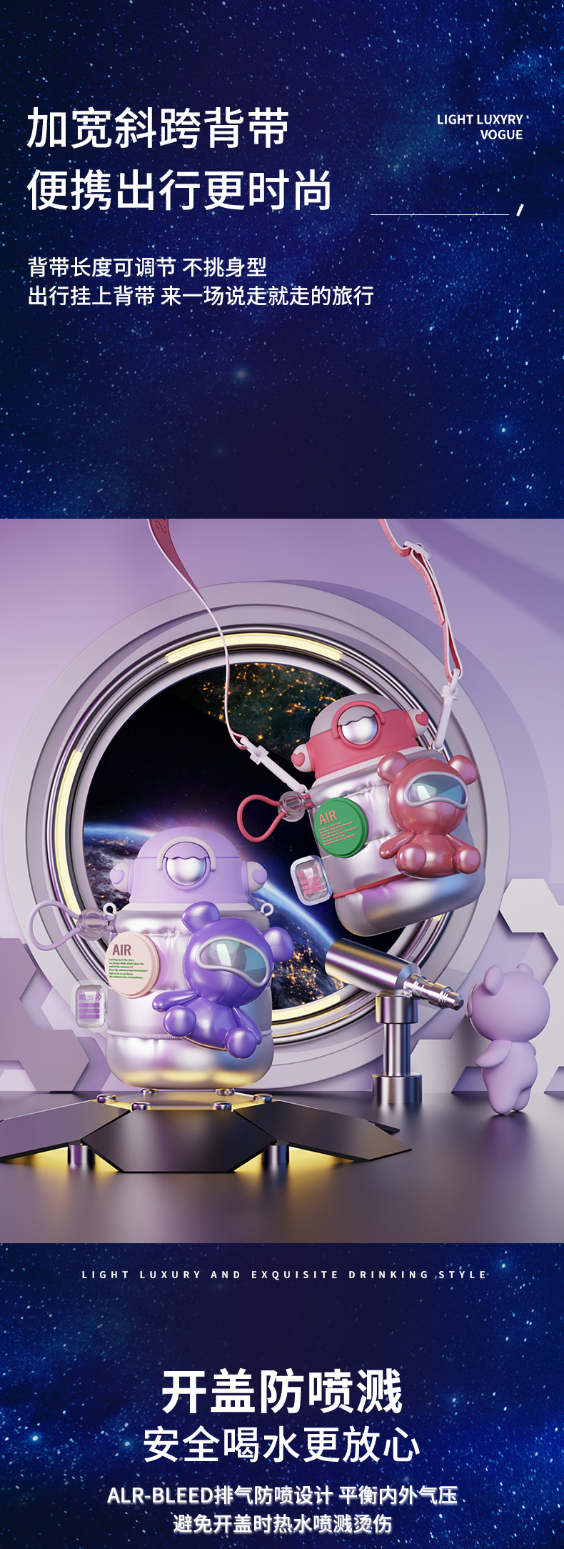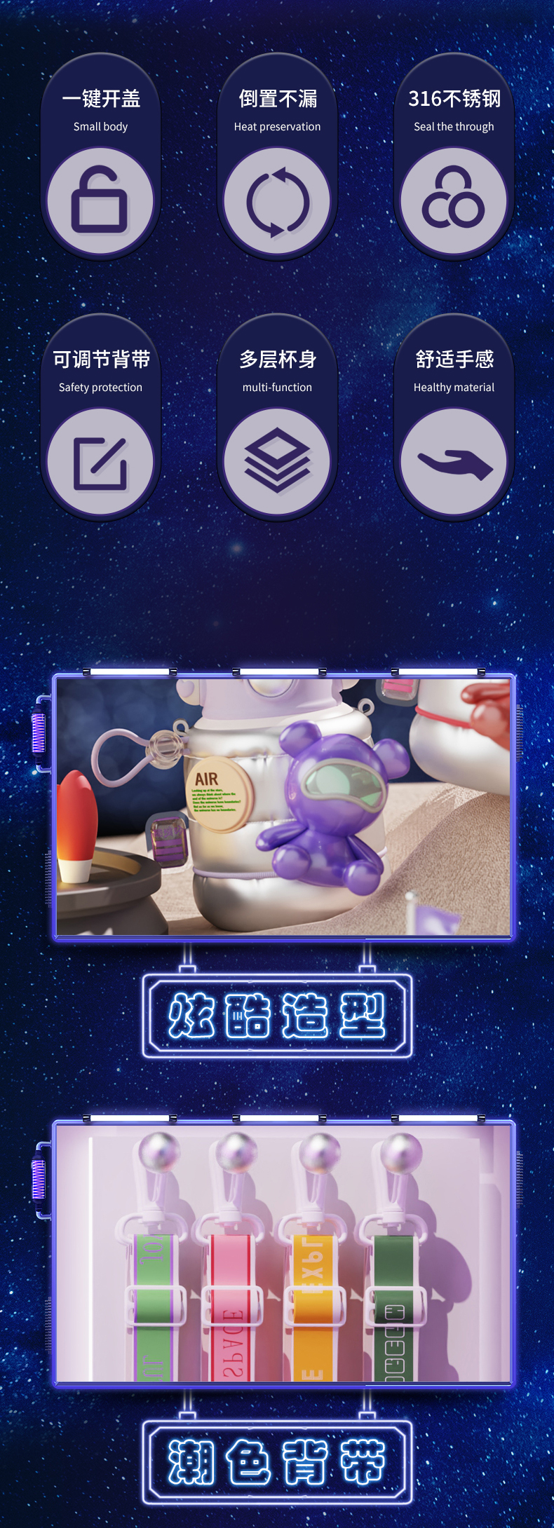 480ML道奇硅胶套大耳朵兔背带保温杯316不锈钢吸管杯
