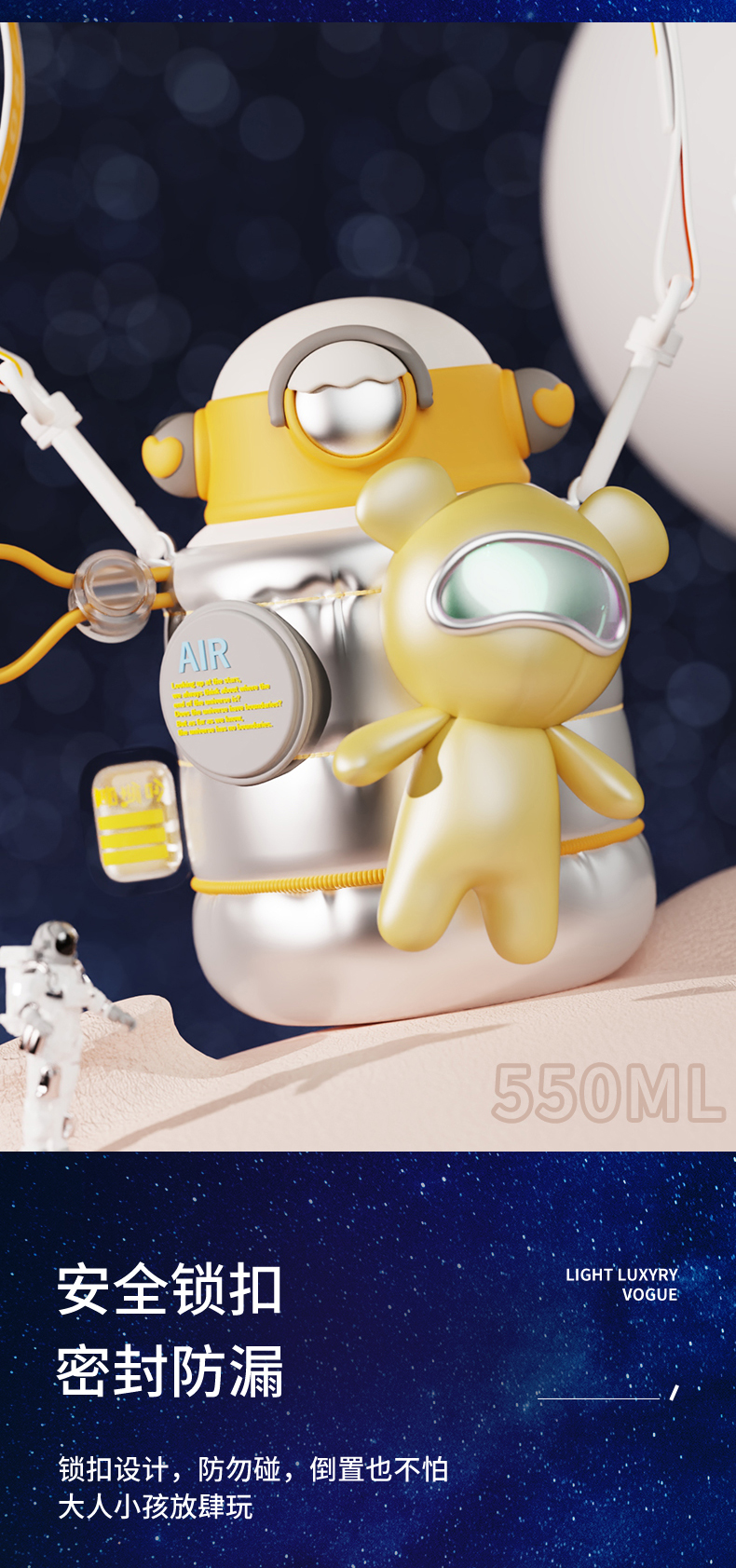 样品星兔创意卡通水杯儿童弹跳吸管杯可爱运动户外背带学生塑料杯