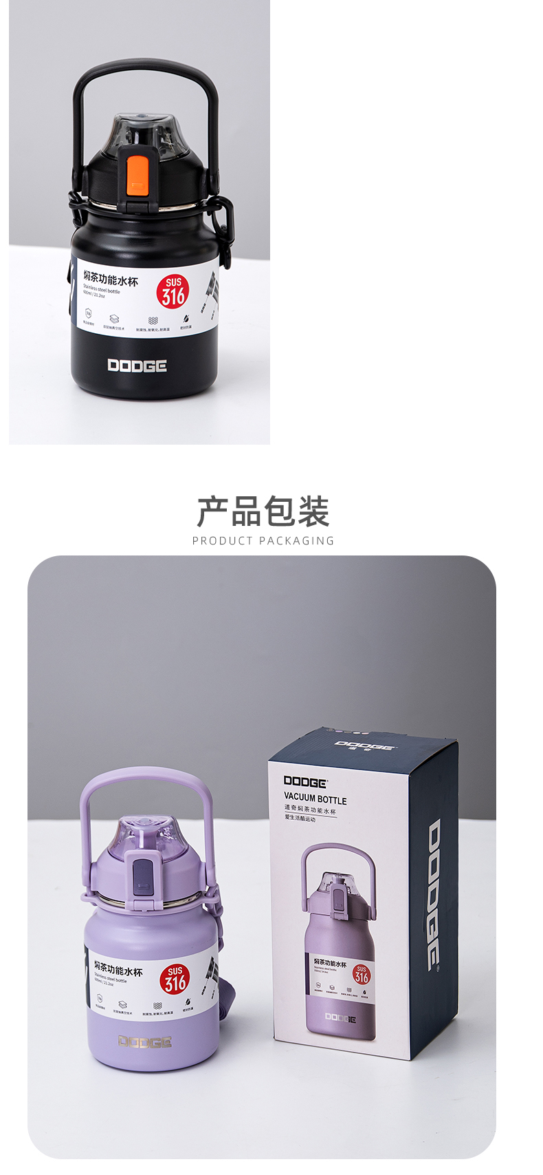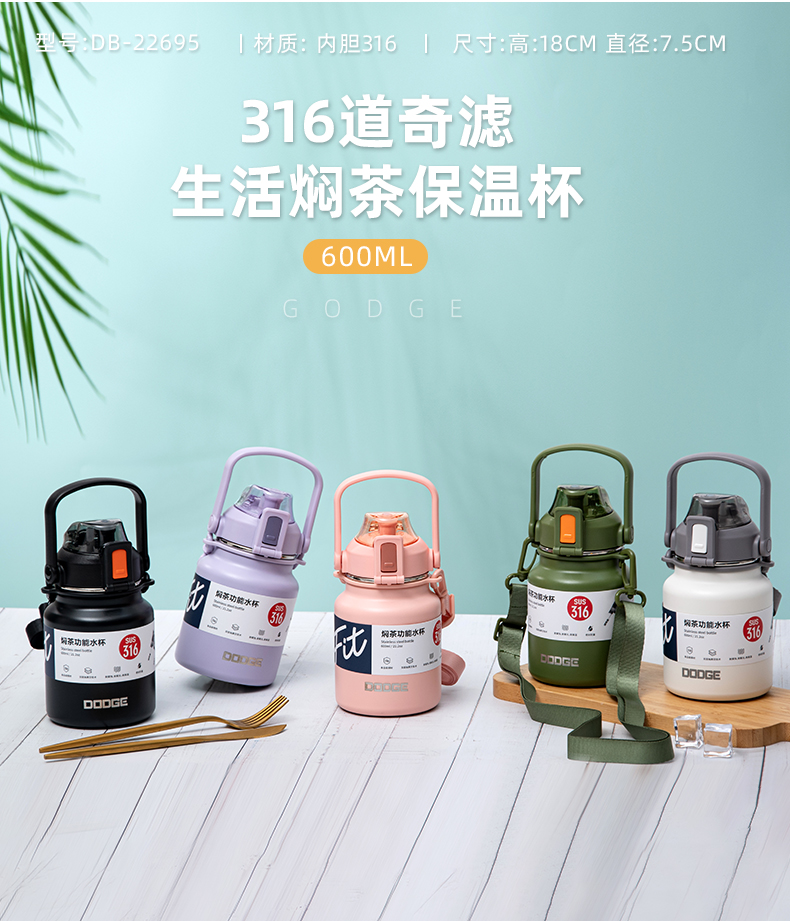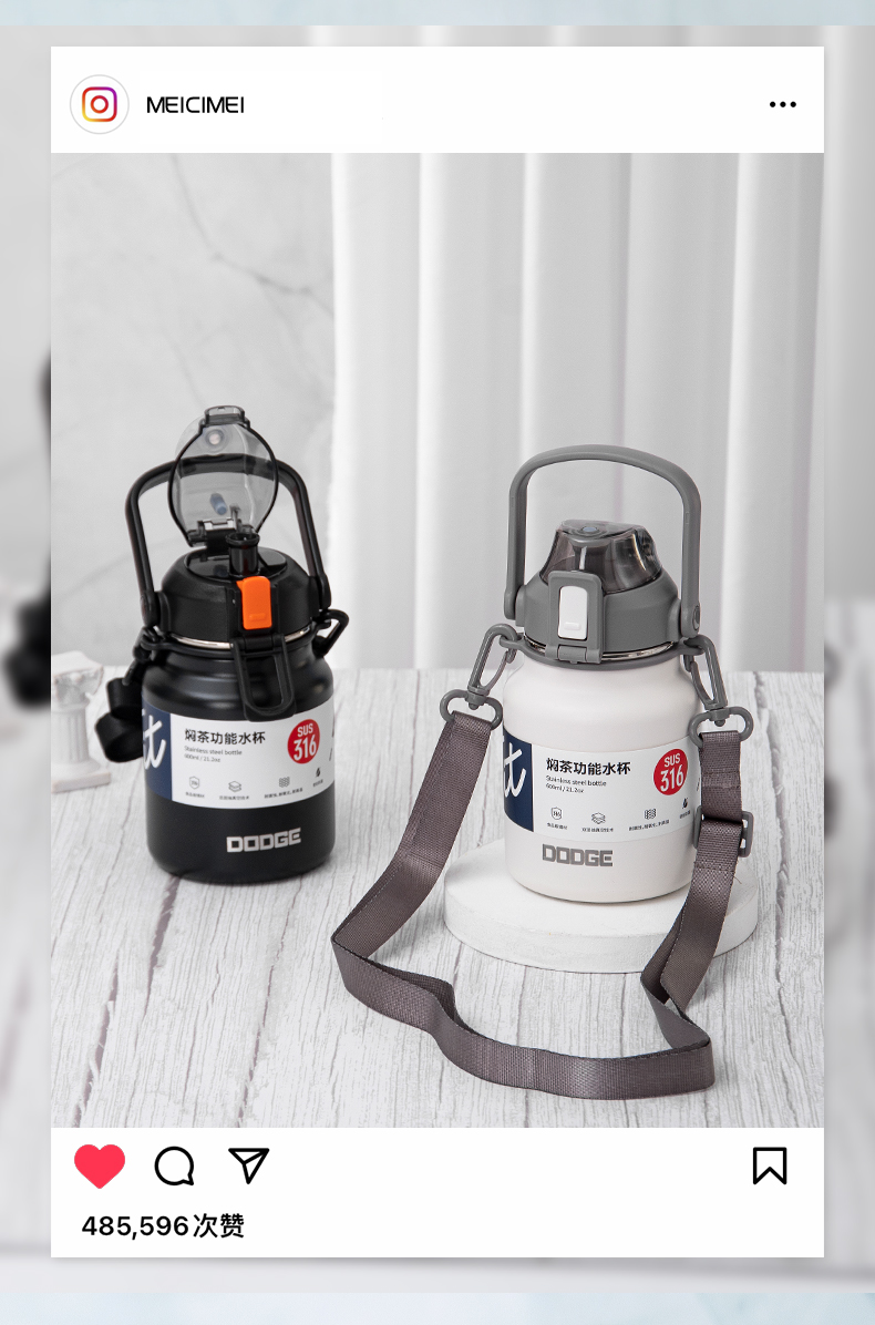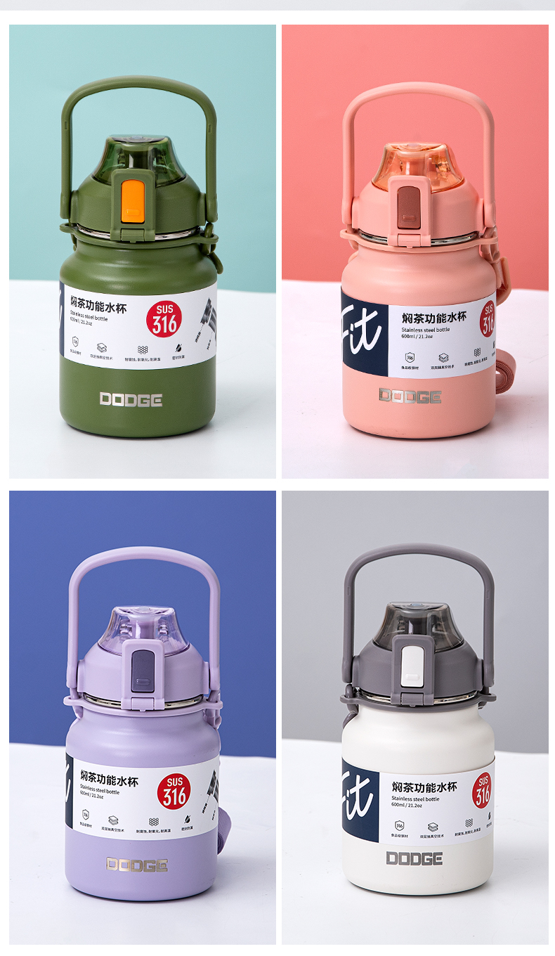 900ML道奇焖茶功能保温杯316不锈钢大容量运动水杯
