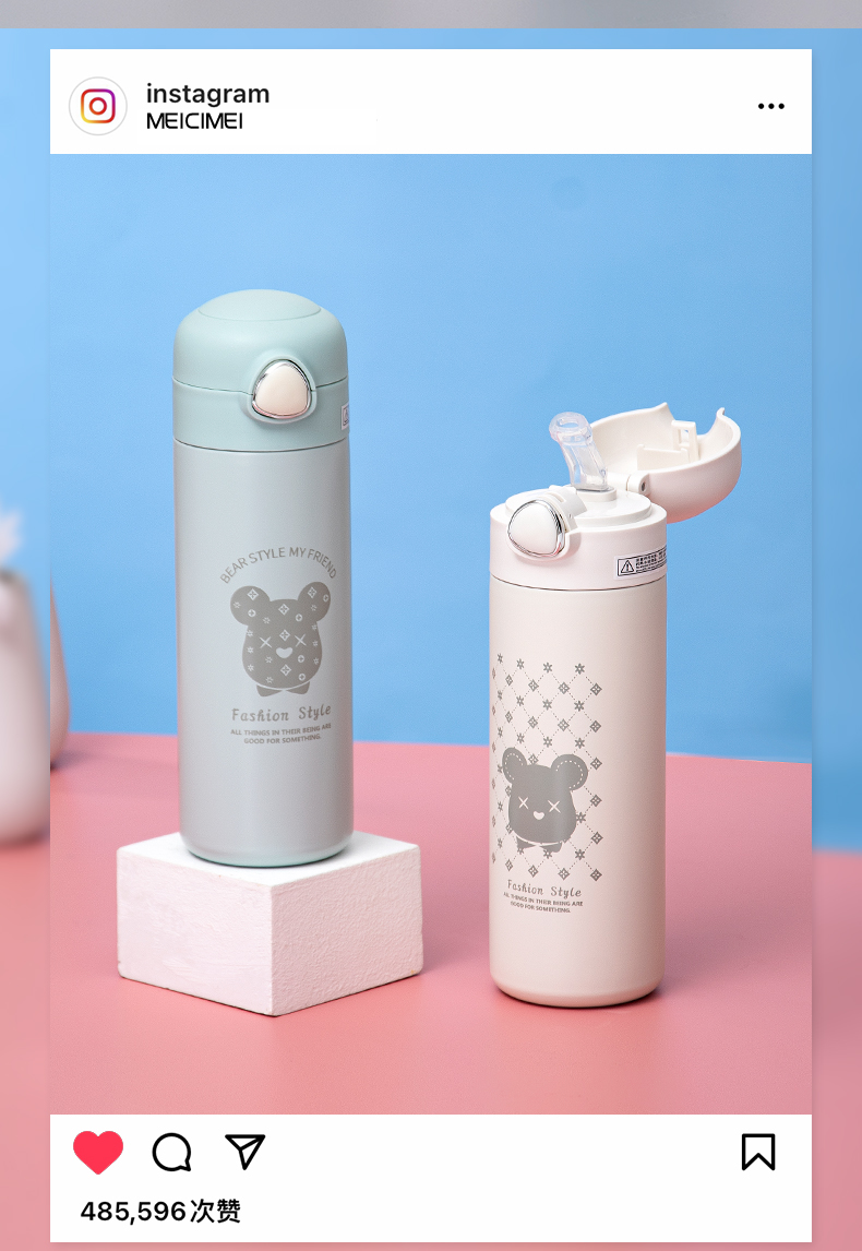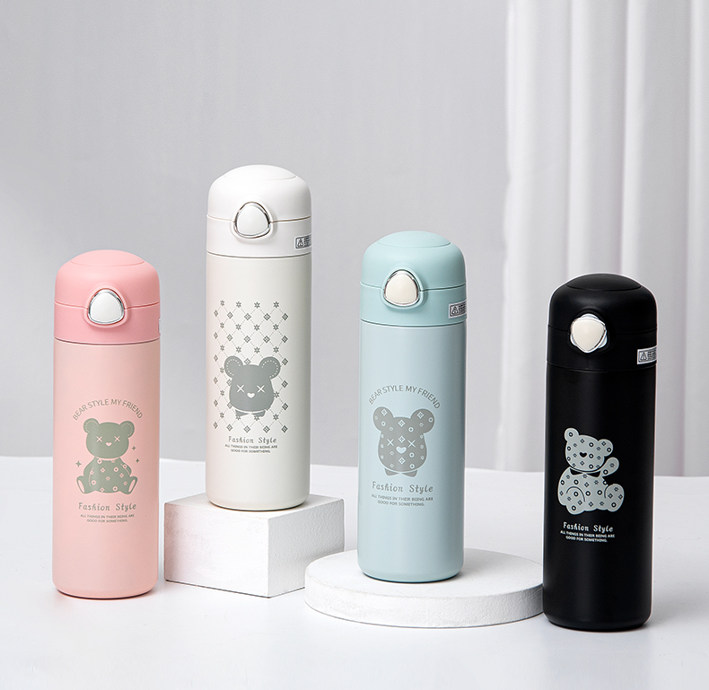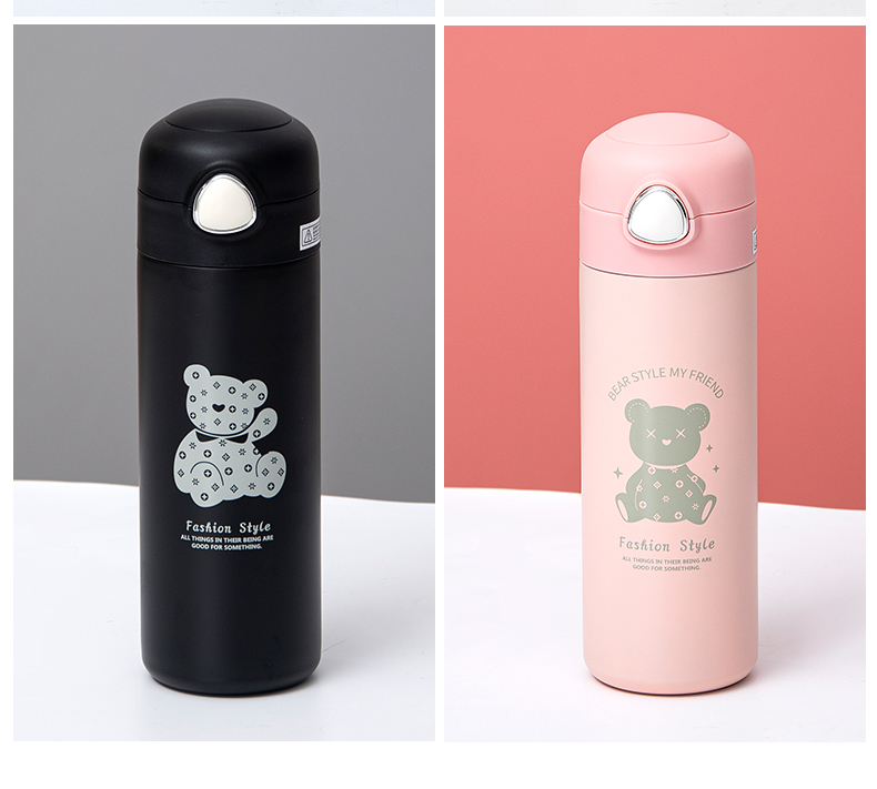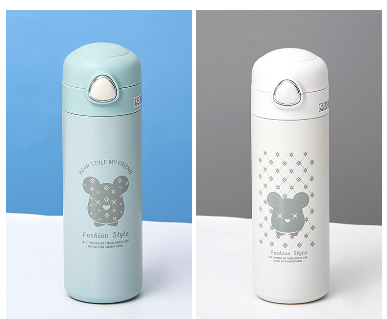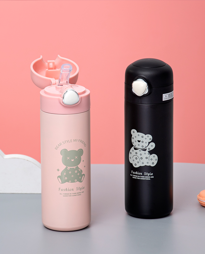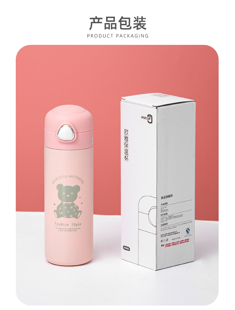 450ML欧雅线描卡通保温杯304不锈钢弹跳盖吸管杯