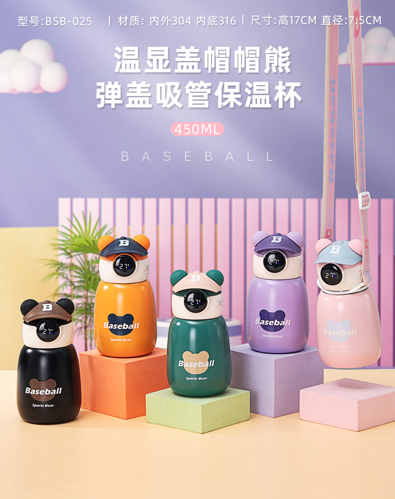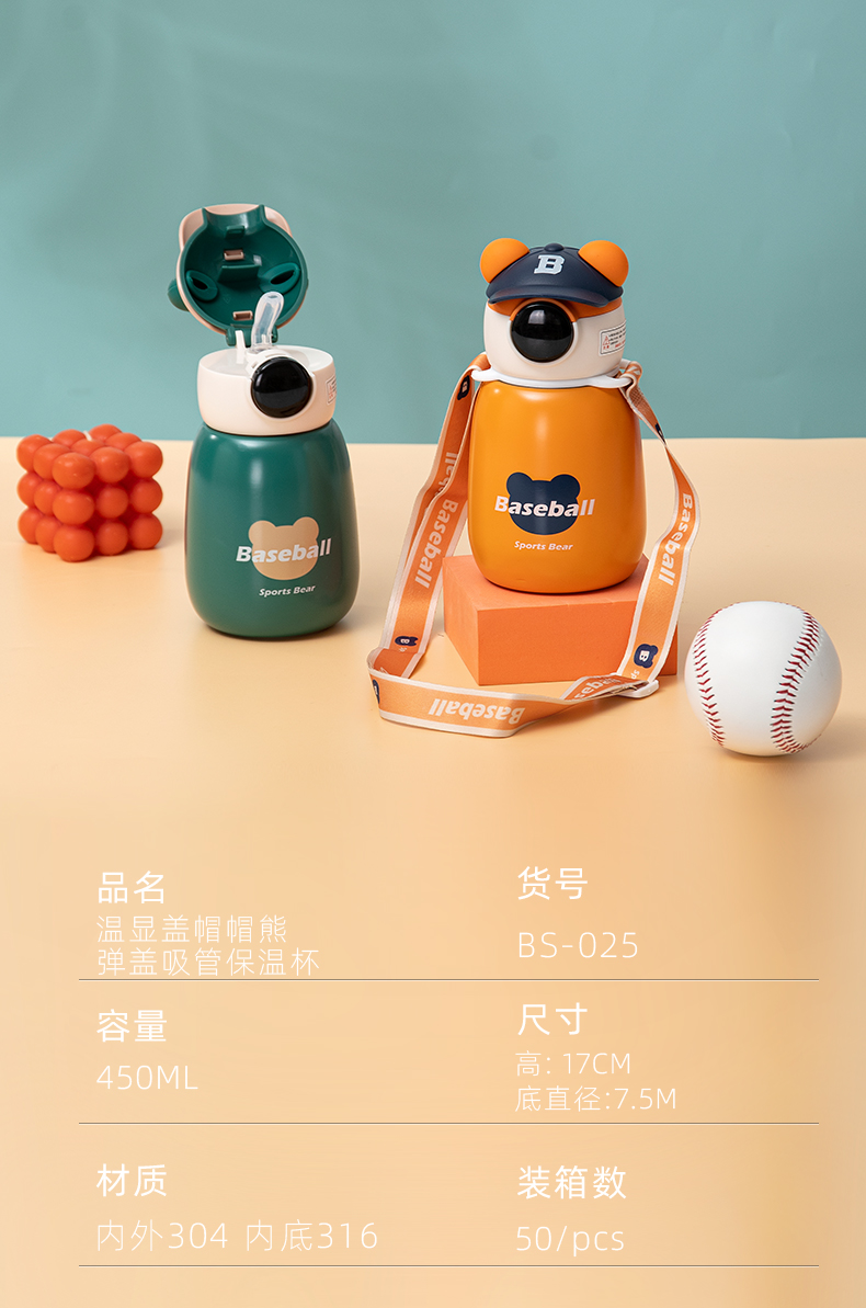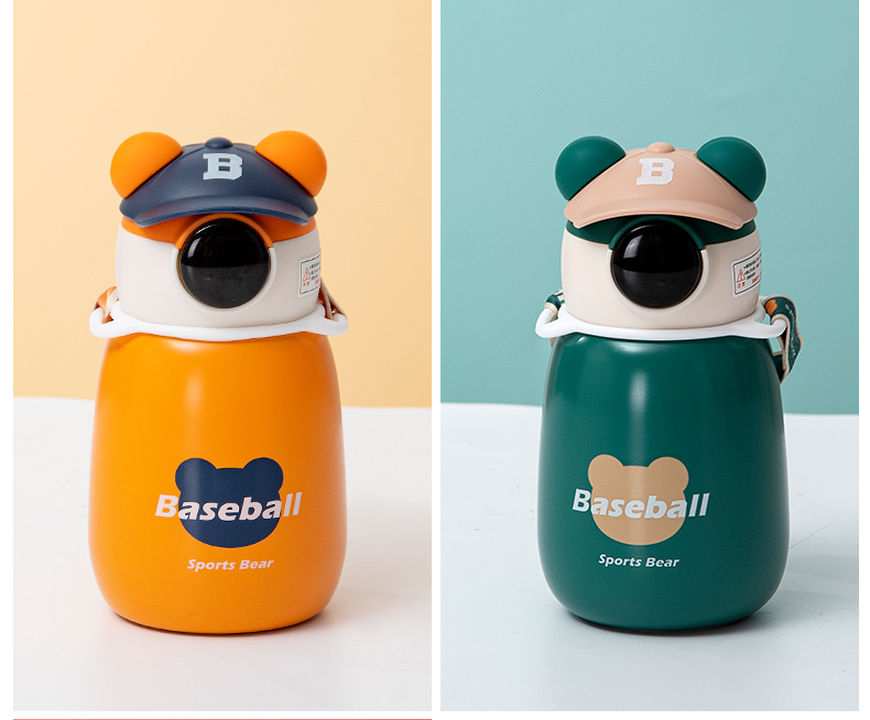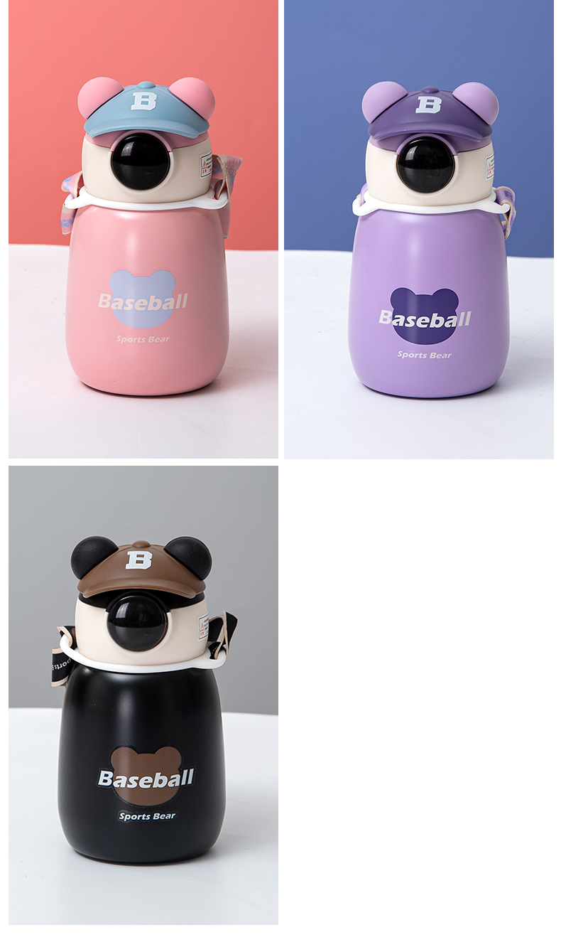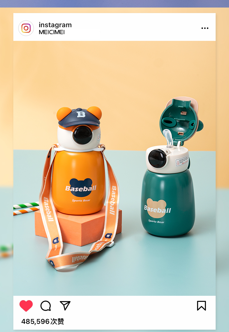 350ML萌熊实色吸管彩色卡通保温杯304不锈钢可爱水杯
