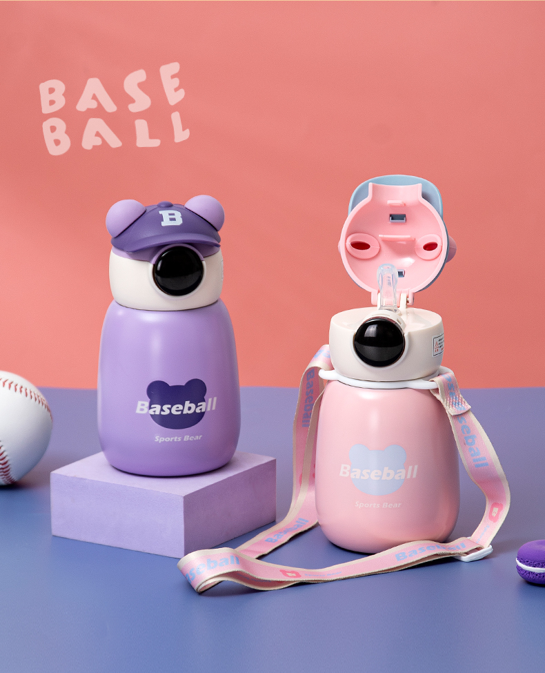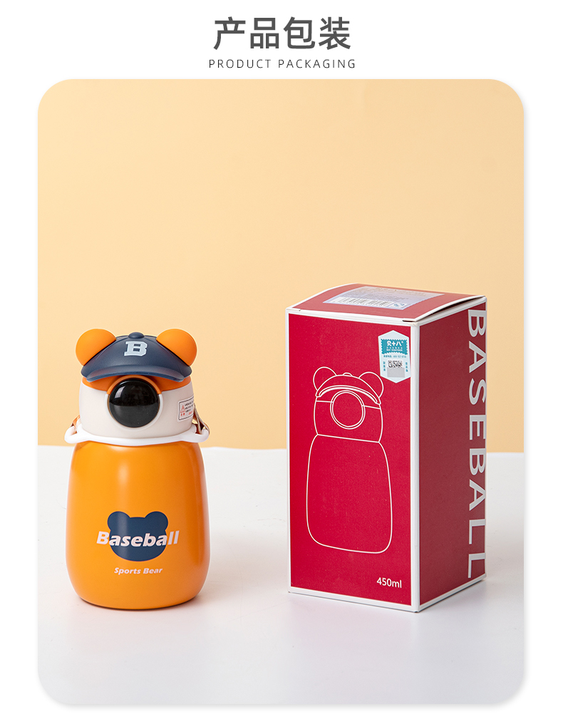350ML卡通萌熊实色吸管KAOLA保温杯304不锈钢水杯