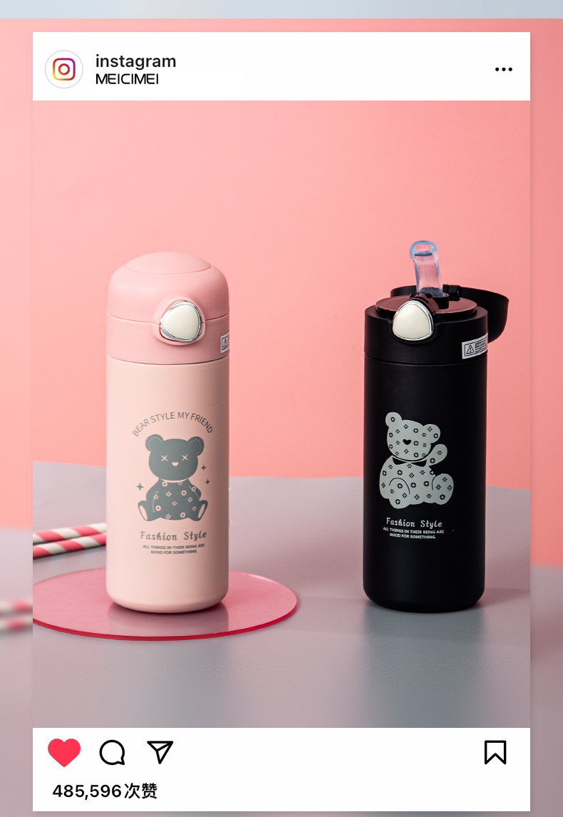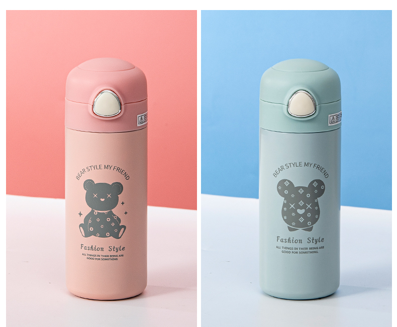 350ml日萌系列萌熊弹盖吸管保温杯时尚礼品定制水杯
