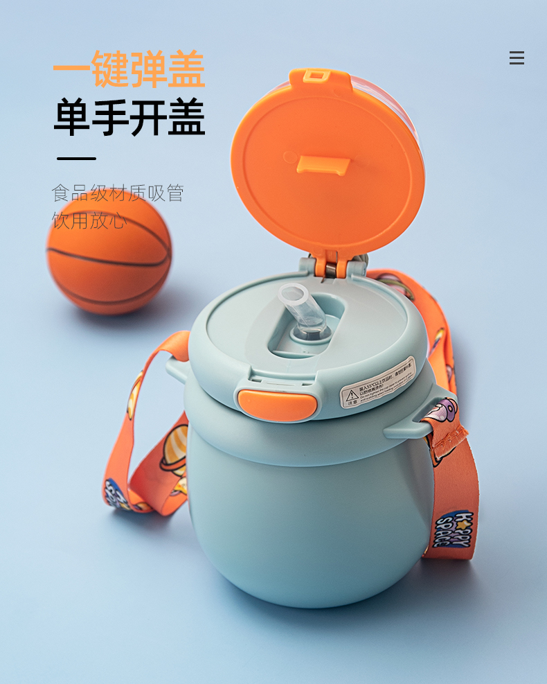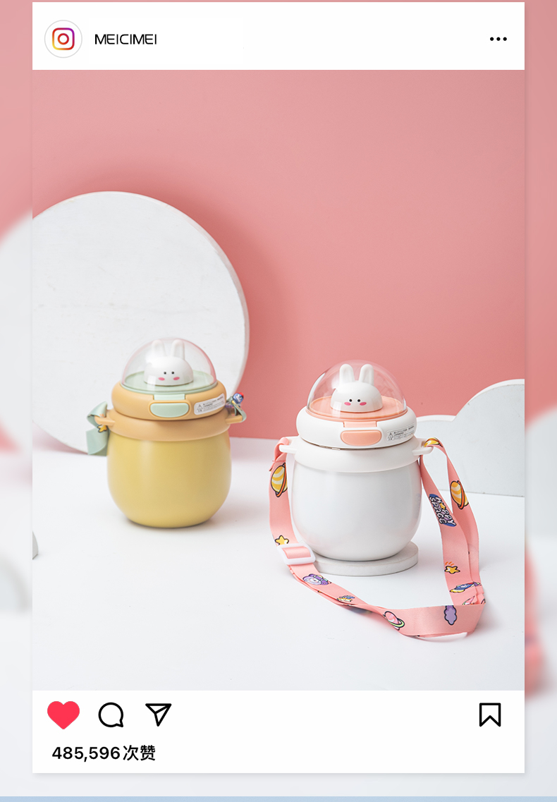 850ML萌趣提手大胖保温杯316不锈钢背带手提两用水杯