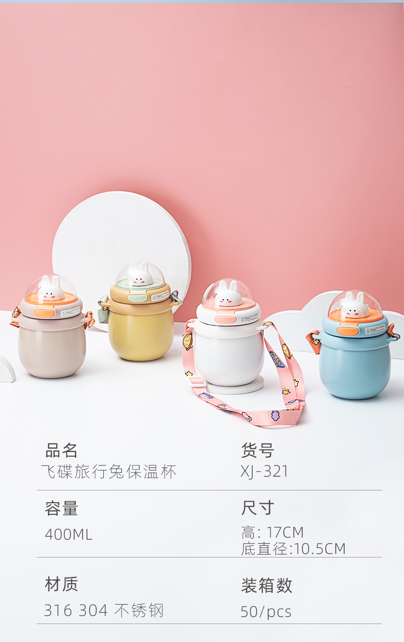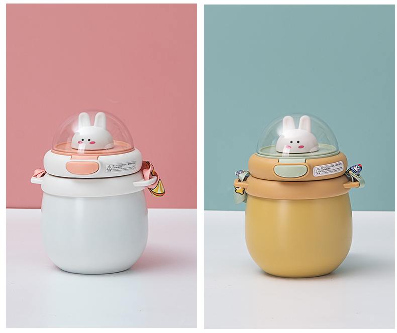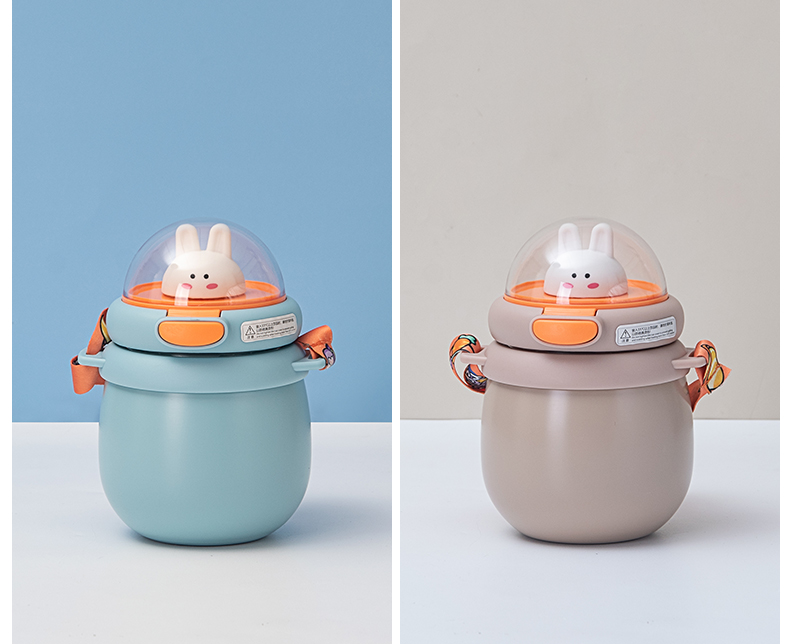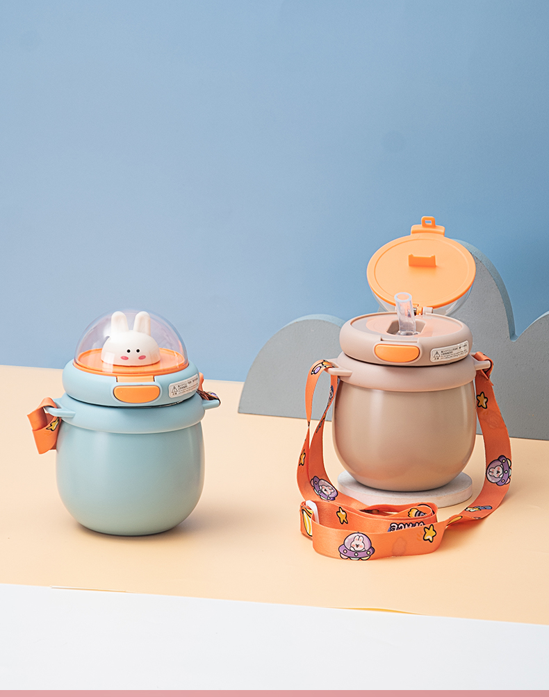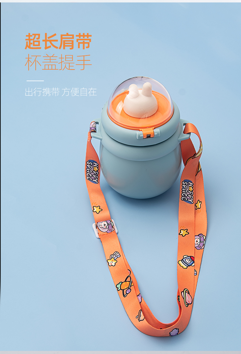 样品星兔创意卡通水杯儿童弹跳吸管杯可爱运动户外背带学生塑料杯