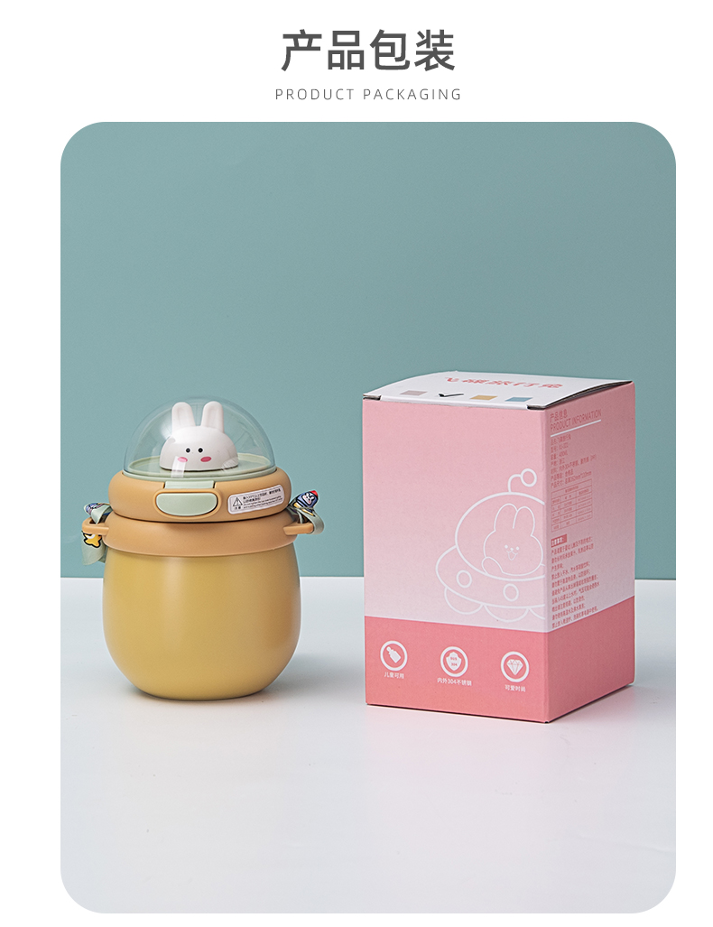 700ML纯色贴纸插头兔保温杯304不锈钢简约弹跳盖水杯