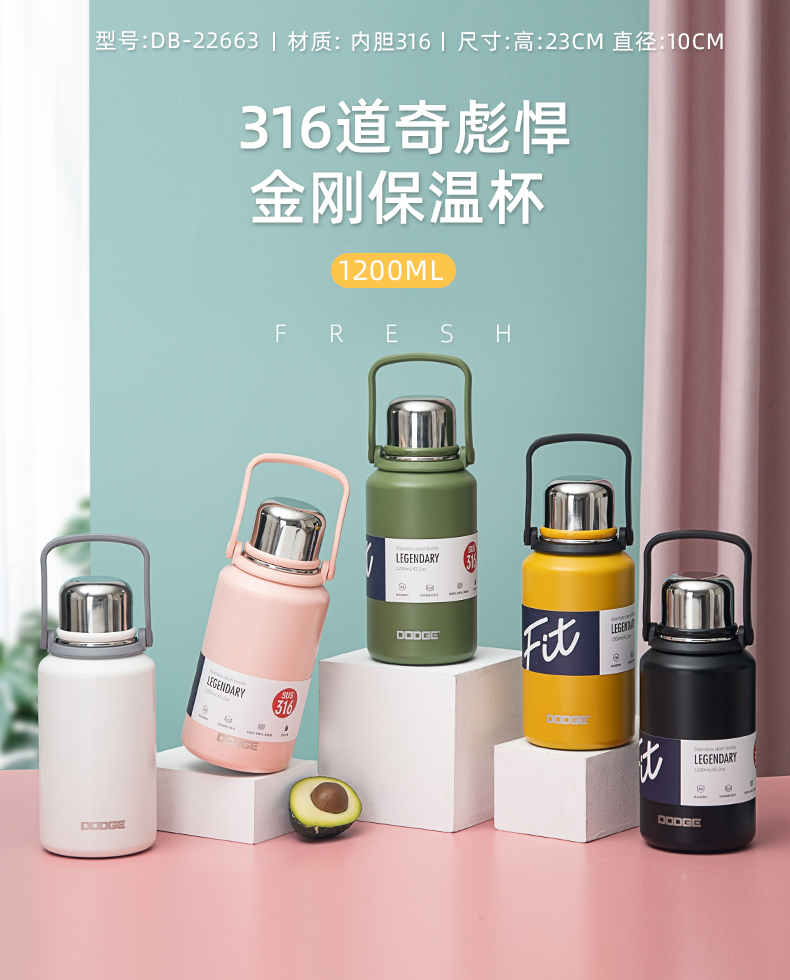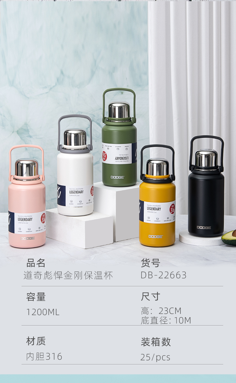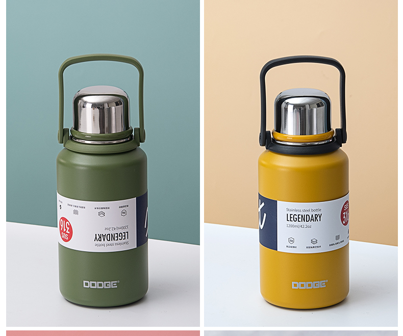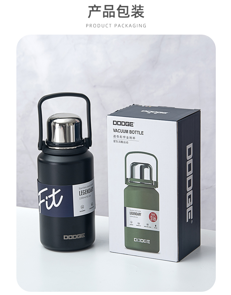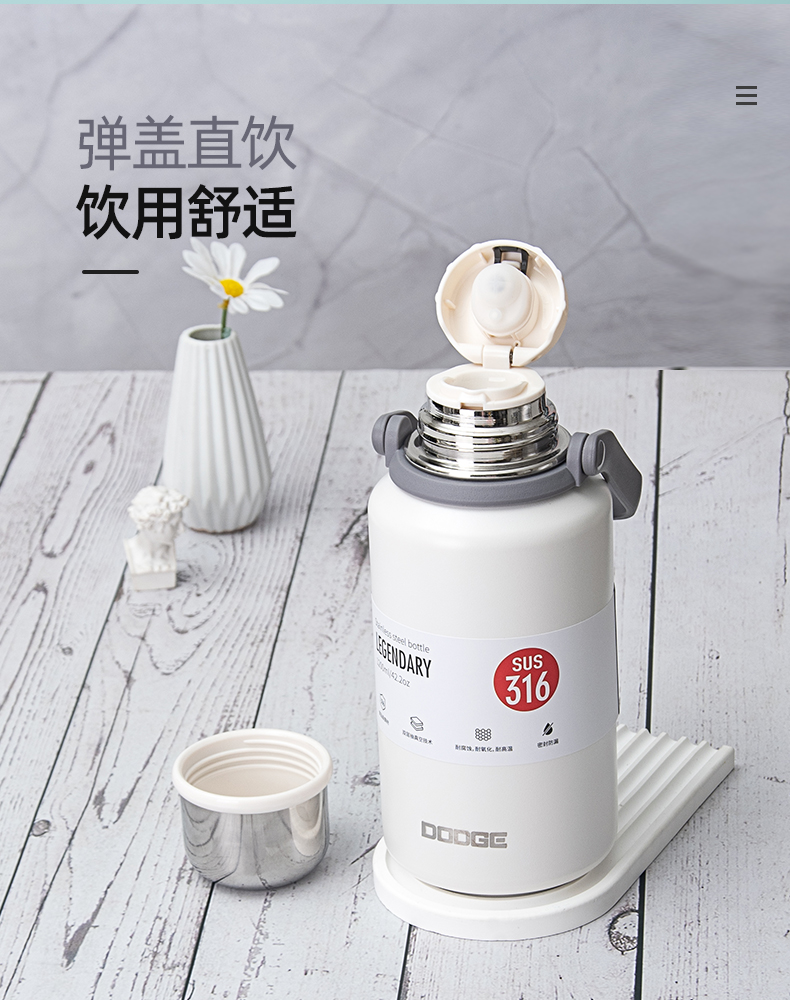 1000ML道奇徒步双饮保温壶316不锈钢大容量保温杯