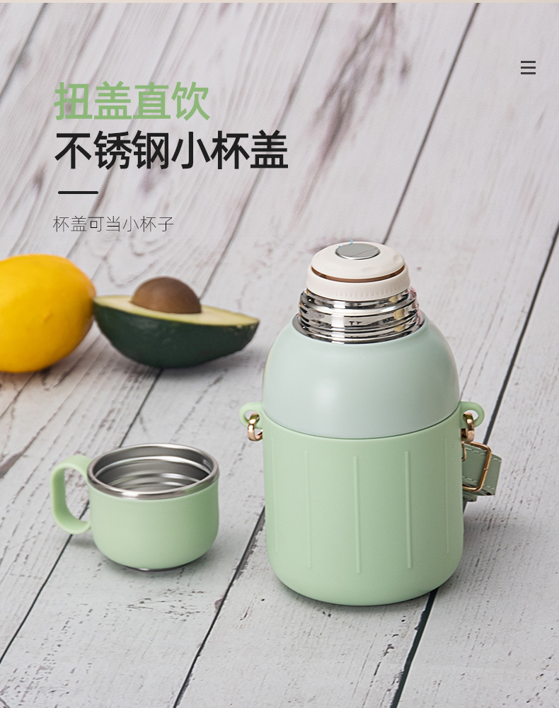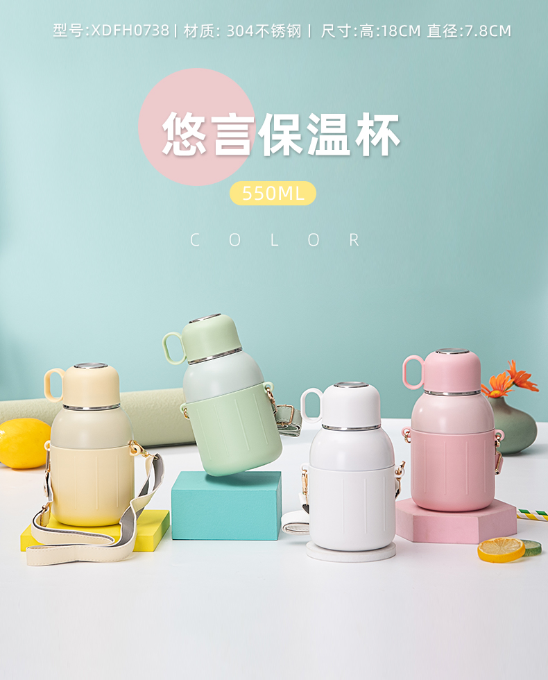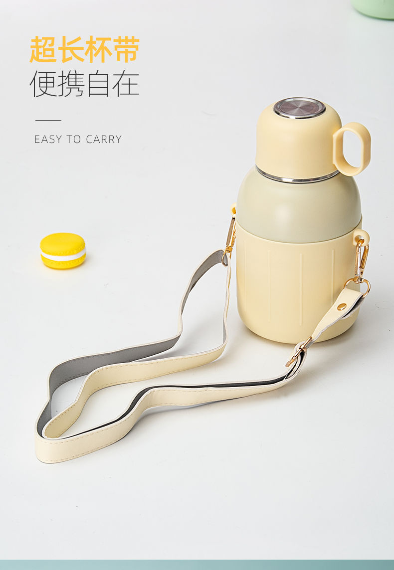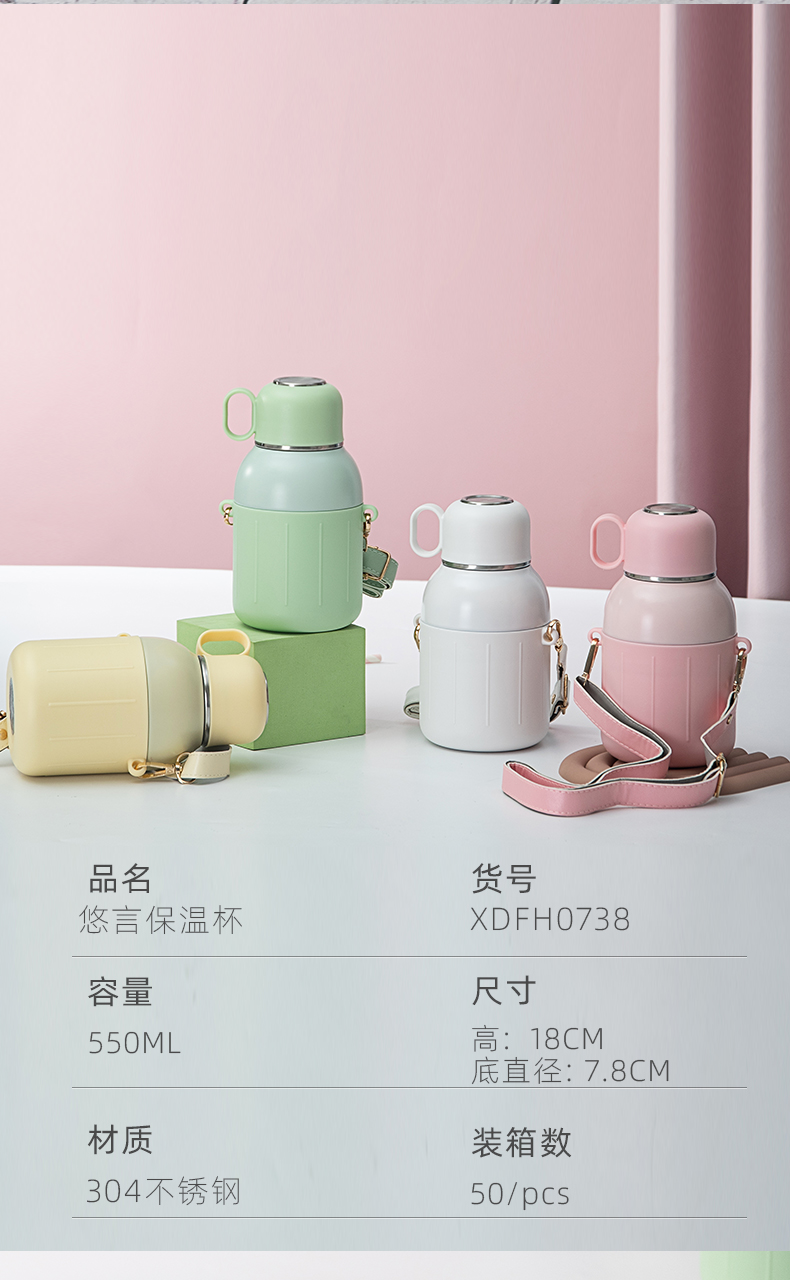 650ML炸弹猫吸管大肚保温杯304不锈钢简约可斜挎水杯