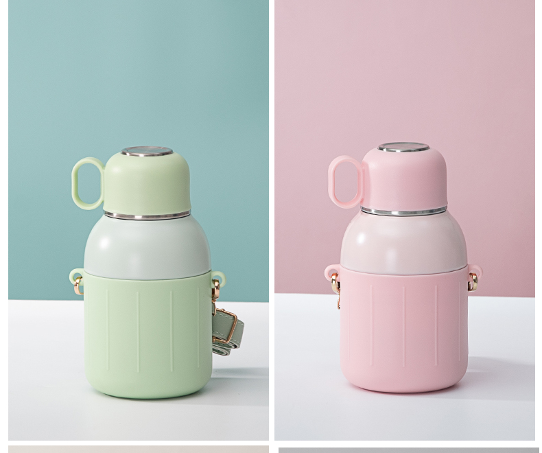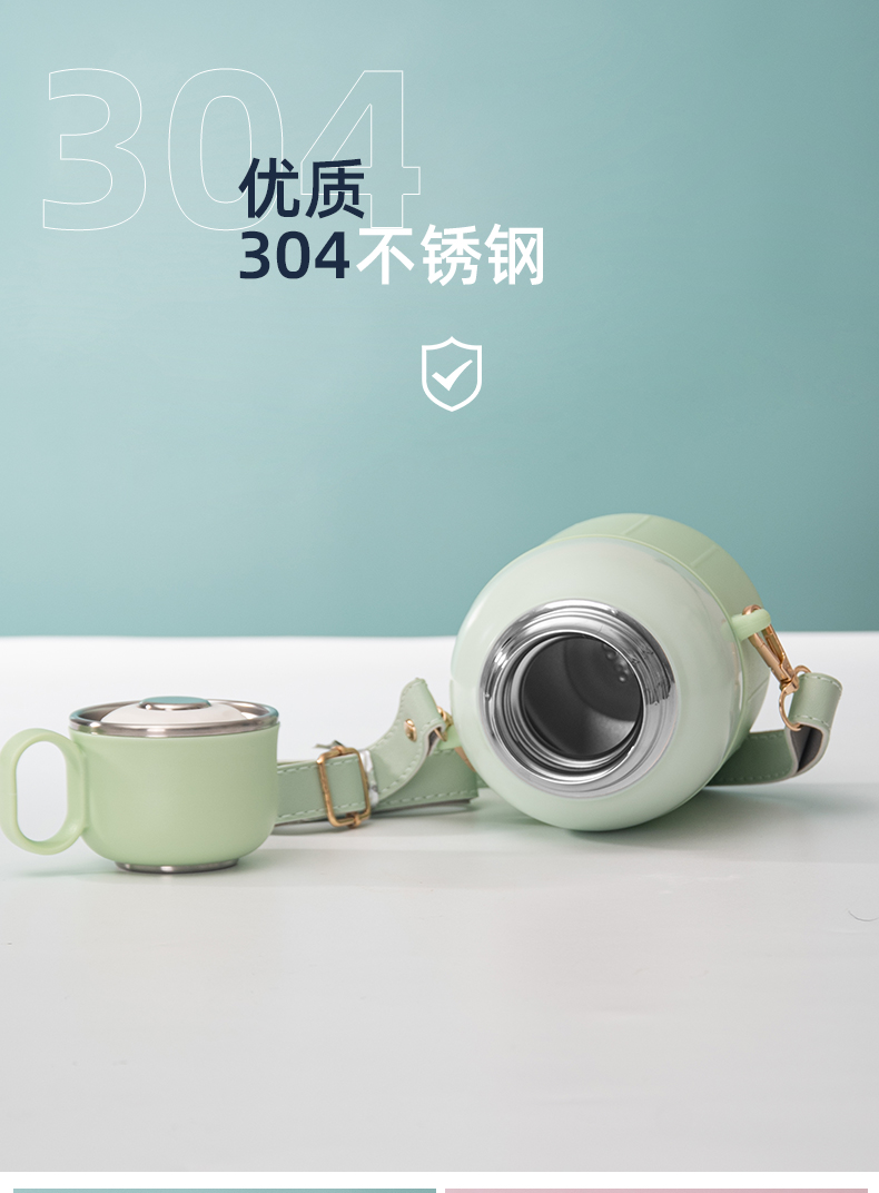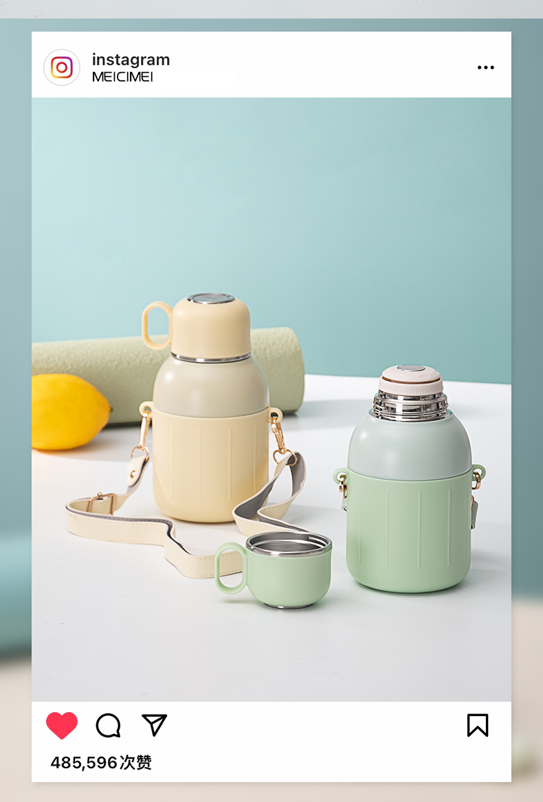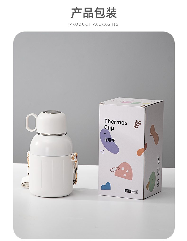 650ML炸弹猫吸管大肚保温杯304不锈钢简约可斜挎水杯