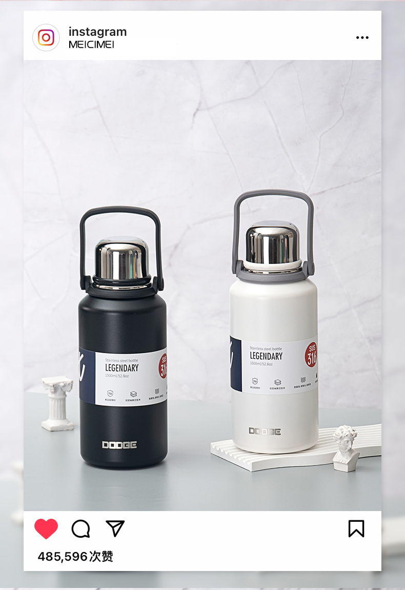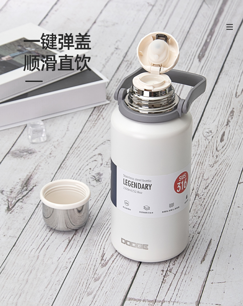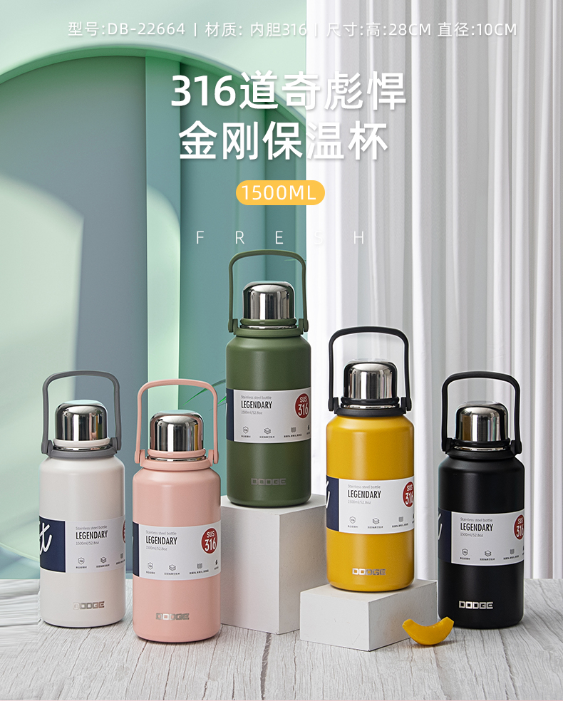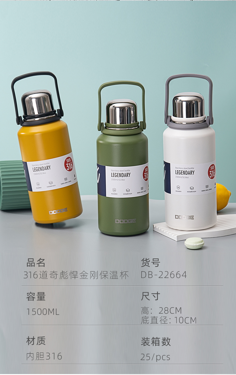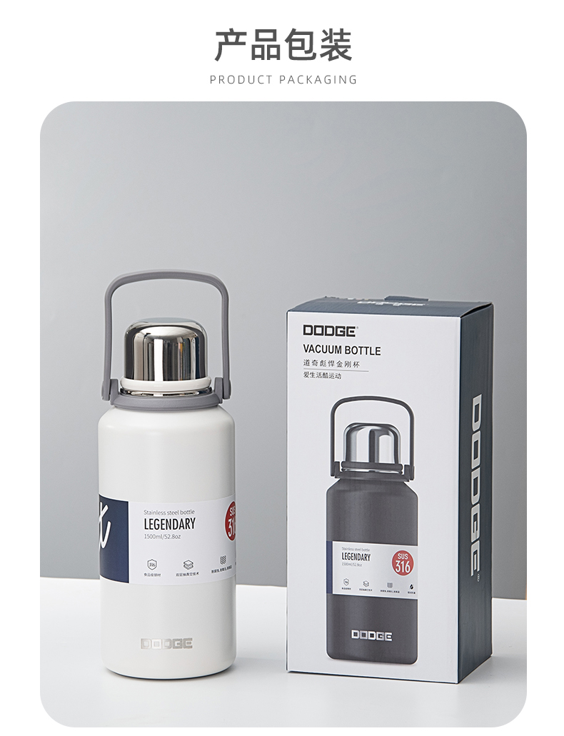 1000ML道奇徒步双饮保温壶316不锈钢大容量保温杯