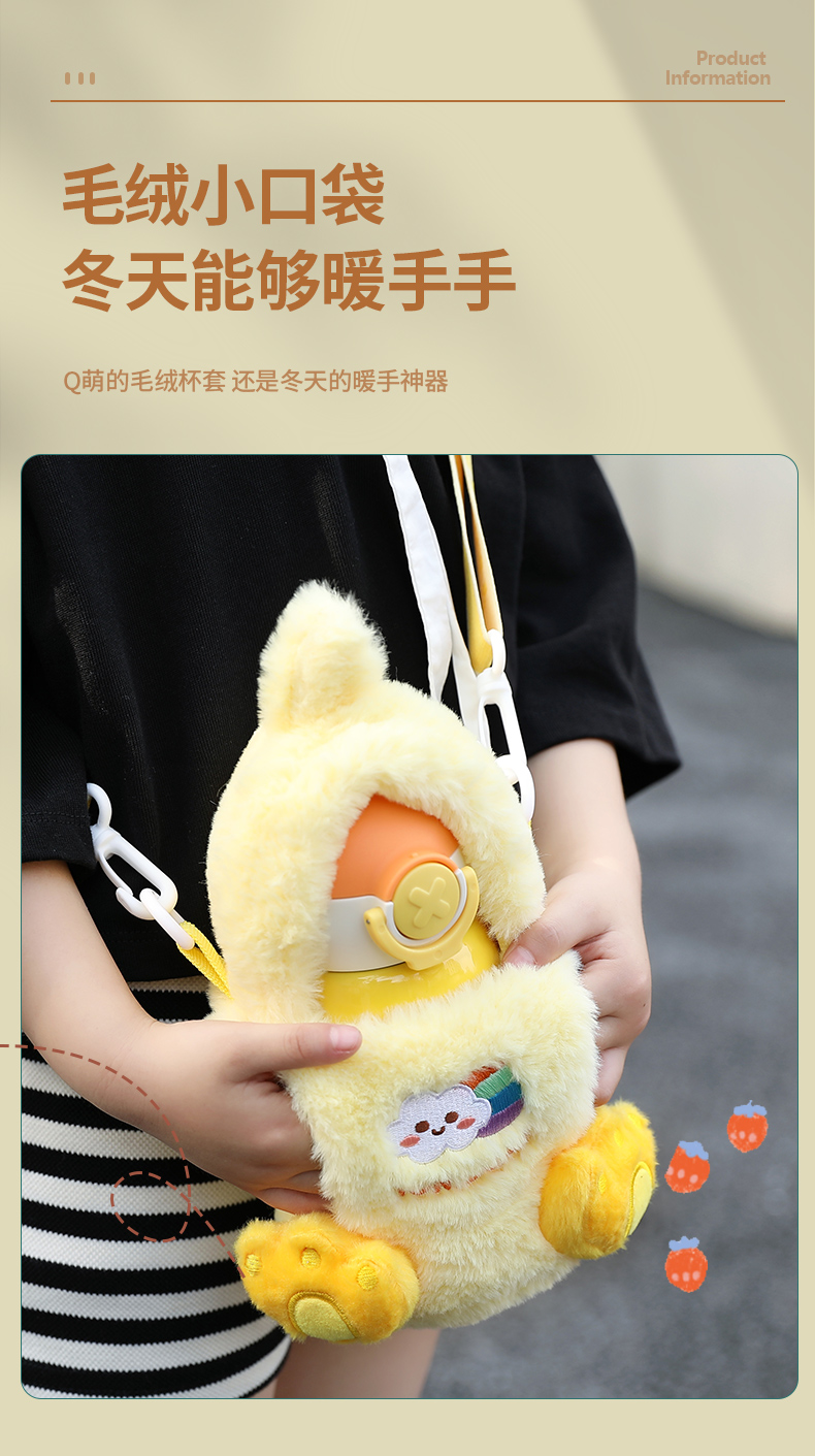 450ML毛绒露西兔单盖儿童保温杯316不锈钢可爱水杯子