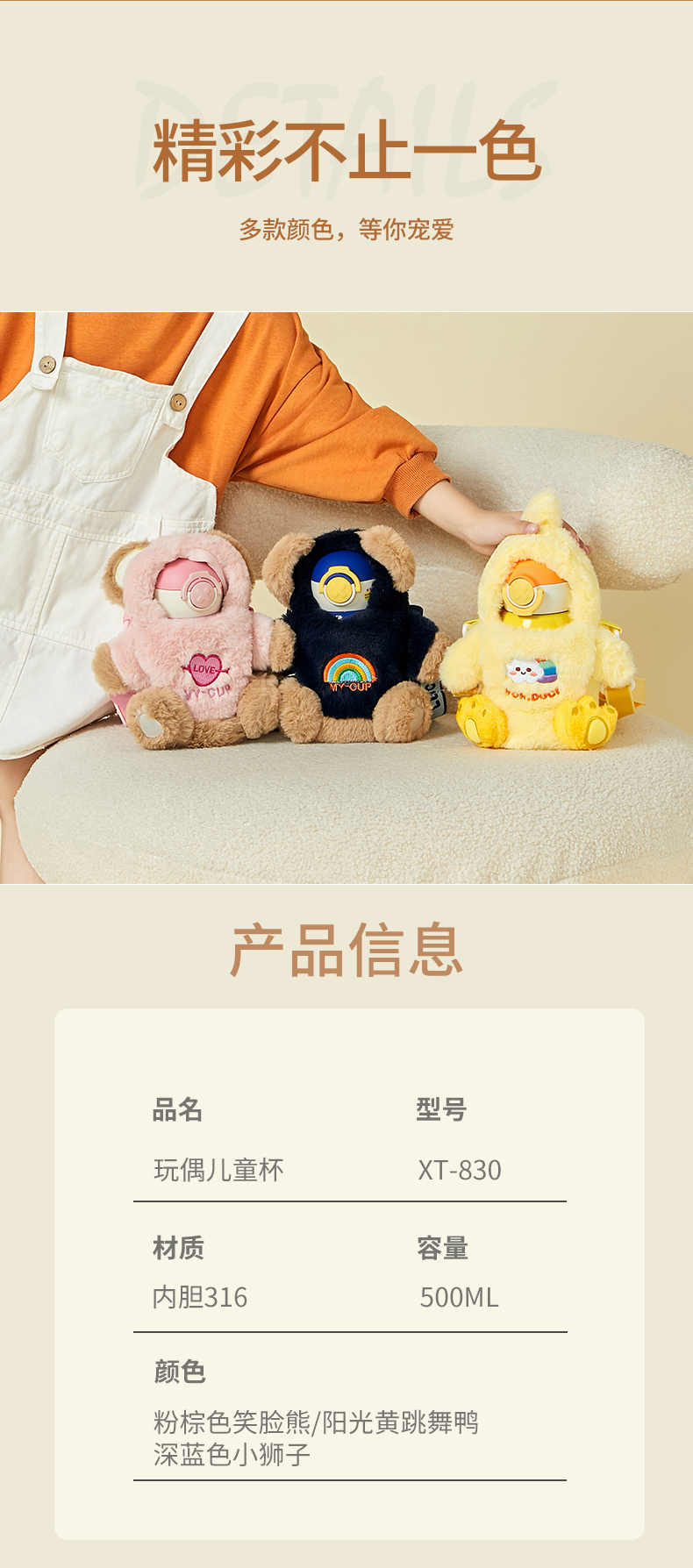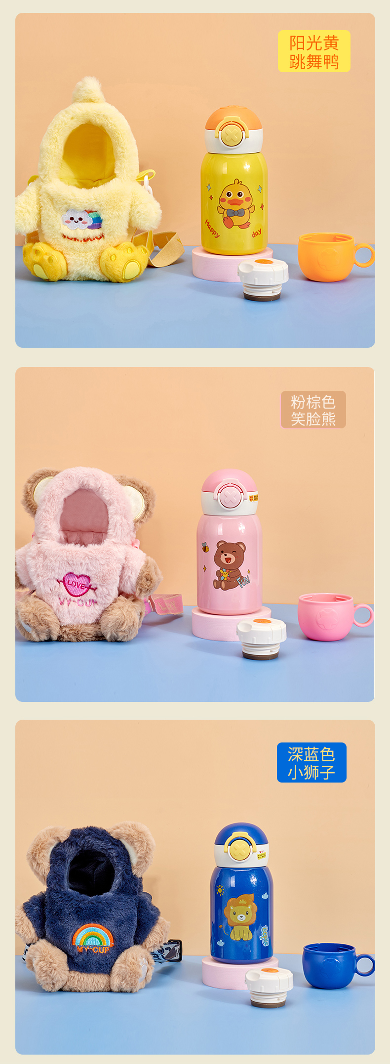 450ML卫衣小熊单盖儿童保温杯316不锈钢可爱吸管杯