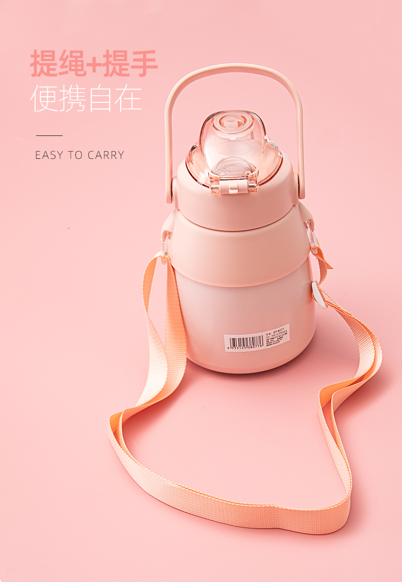 480ML道奇硅胶套大耳朵兔背带保温杯316不锈钢吸管杯